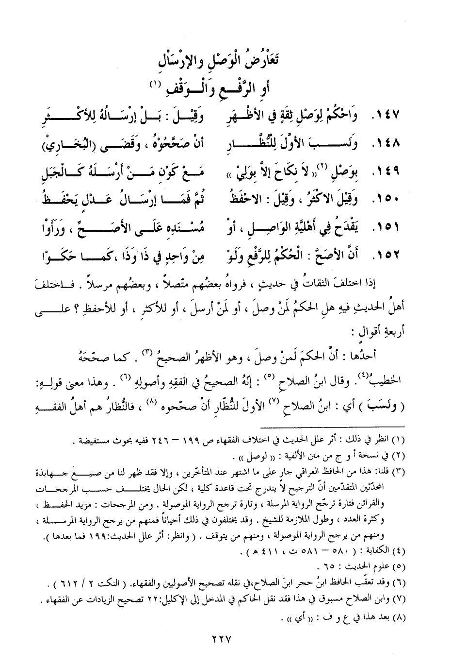 إذا اختلفَ الثقاتُ في حديثٍ، فرواهُ بعضُهم متّصلاً، وبعضُهم مرسلاً. فاختلفَ أهلُ الحديثِ فيهِ هلِ الحكمُ لمَنْ وصلَ، أو لمَنْ أرسلَ، أو للأكثرِ، أو للأحفظِ؟ على أربعةِ أقوالٍ:
