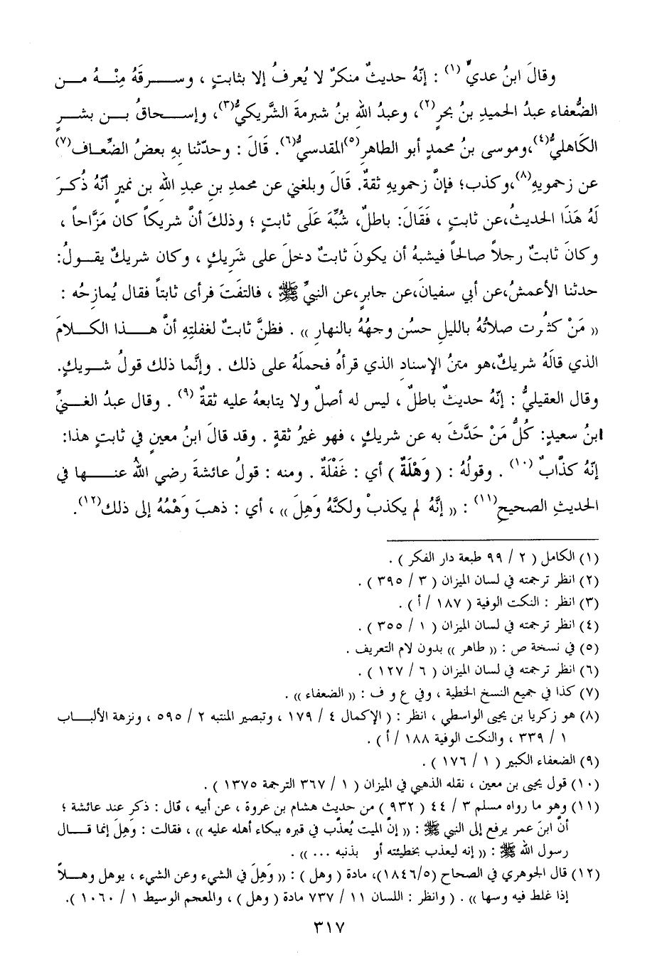 وقالَ ابنُ عديٍّ: إنّهُ حديثٌ منكرٌ لا يُعرفُ إلا بثابتٍ، وسرقَهُ مِنْهُ من الضُّعفاء عبدُ الحميدِ بنُ بحرٍ، وعبدُ اللهِ بنُ شبرمةَ الشَّريكيُّ، وإسحاقُ بن بشرٍ الكَاهليُّ، وموسى بنُ محمدٍ أبو الطاهرِالمقدسيُّ. قَالَ: وحدّثنا بِهِ بعضُ الضِّعاف عن زحمويهِ، وكذب؛ فإنَّ زحمويهِ ثقةٌ. قَالَ وبلغني عن محمدِ بنِ عبدِ اللهِ بن نميرٍ أنّهُ ذُكرَ لَهُ هَذَا الحديثُ، عن ثابتٍ، فَقَالَ: باطلٌ، شُبِّهَ عَلَى ثابتٍ؛ وذلكَ أنَّ شريكاً كان مَزَّاحاً، وكانَ ثابتٌ رجلاً صالحاً فيشبهُ أن يكونَ ثابتٌ دخلَ على شَرِيكٍ، وكان شريكٌ يقولُ: حدثنا الأعمشُ، عن أبي سفيانَ، عن جابرٍ، عن النبيِّ (، فالتفَتَ فرأى ثابتاً فقال يُمازِحُه: ((مَنْ كثُرت صلاتُهُ بالليلِ حسُن وجهُهُ بالنهارِ)) . فظنَّ ثابتٌ لغفلتِهِ أنَّ هذا الكلامَ الذي قالَهُ شريكٌ، هو متنُ الإسنادِ الذي قرأهُ فحملَهُ على ذلك. وإنَّما ذلك قولُ شريكٍ. وقال العقيليُّ: إنّهُ حديثٌ باطلٌ، ليس له أصلٌ ولا يتابعهُ عليه ثقةٌ. وقال عبدُ الغنيِّ بنُ سعيدٍ: كُلُّ مَنْ حَدَّثَ به عن شريكٍ، فهو غيرُ ثقةٍ. وقد قالَ ابنُ معينٍ في ثابتٍ هذا: إنّهُ كذَّابٌ. وقولُهُ: (وَهْلَةٌ) أي: غَفْلَةٌ. ومنه: قولُ عائشةَ رضي اللهُ عنها في الحديثِ الصحيحِ: ((إنَّهُ لم يكذبْ ولكنَّهُ وَهِلَ)) ، أي: ذهبَ وَهْمُهُ إلى ذلك.