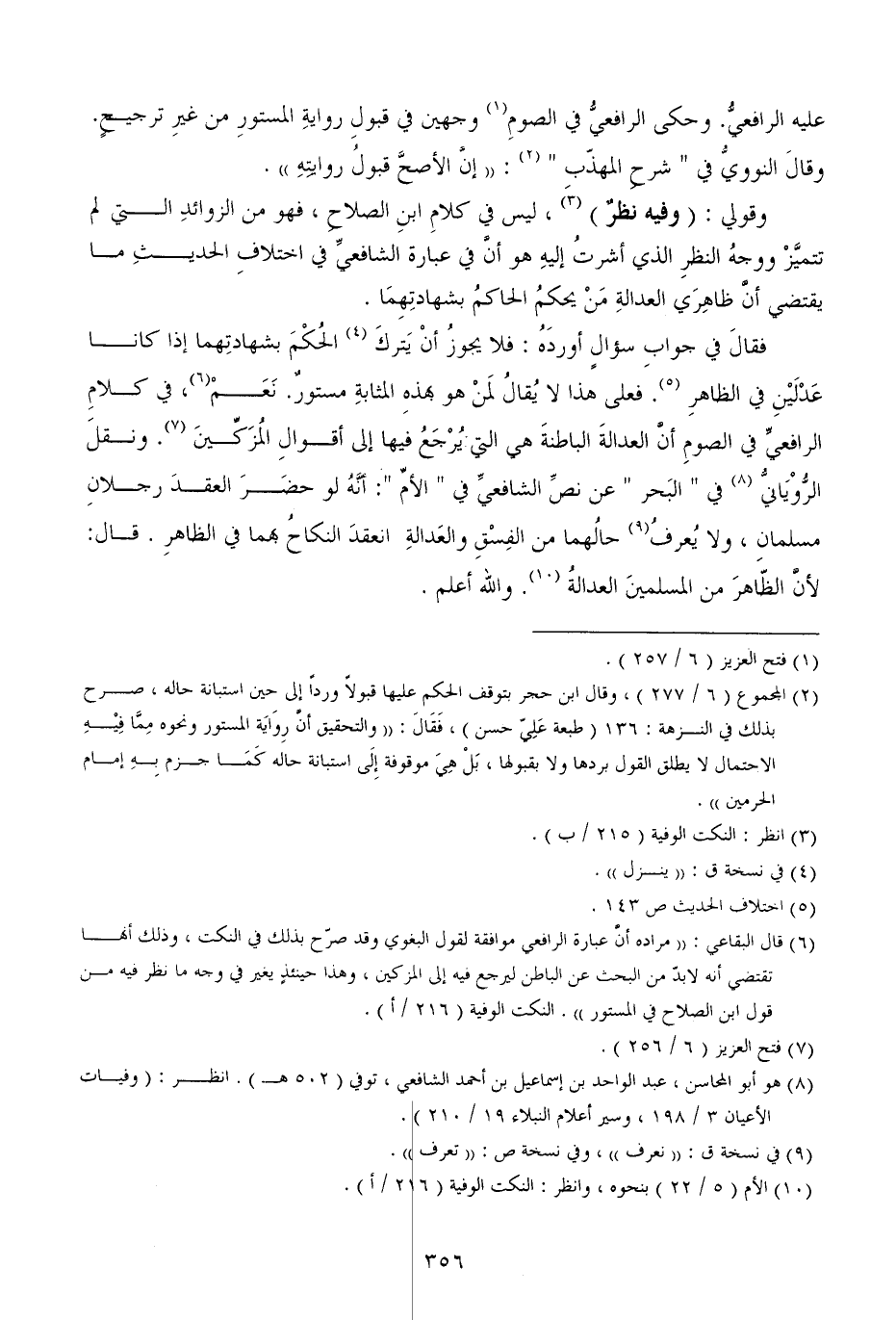 وقولي: (وفيه نظرٌ) ، ليس في كلامِ ابنِ الصلاحِ، فهو من الزوائدِ التي لم تتميَّزْ ووجهُ النظرِ الذي أشرتُ إليهِ هو أنَّ في عبارة الشافعيِّ في اختلافِ الحديثِ ما يقتضي أنَّ ظاهِرَي العدالةِ مَنْ يحكمُ الحاكمُ بشهادتِهِمَا.
