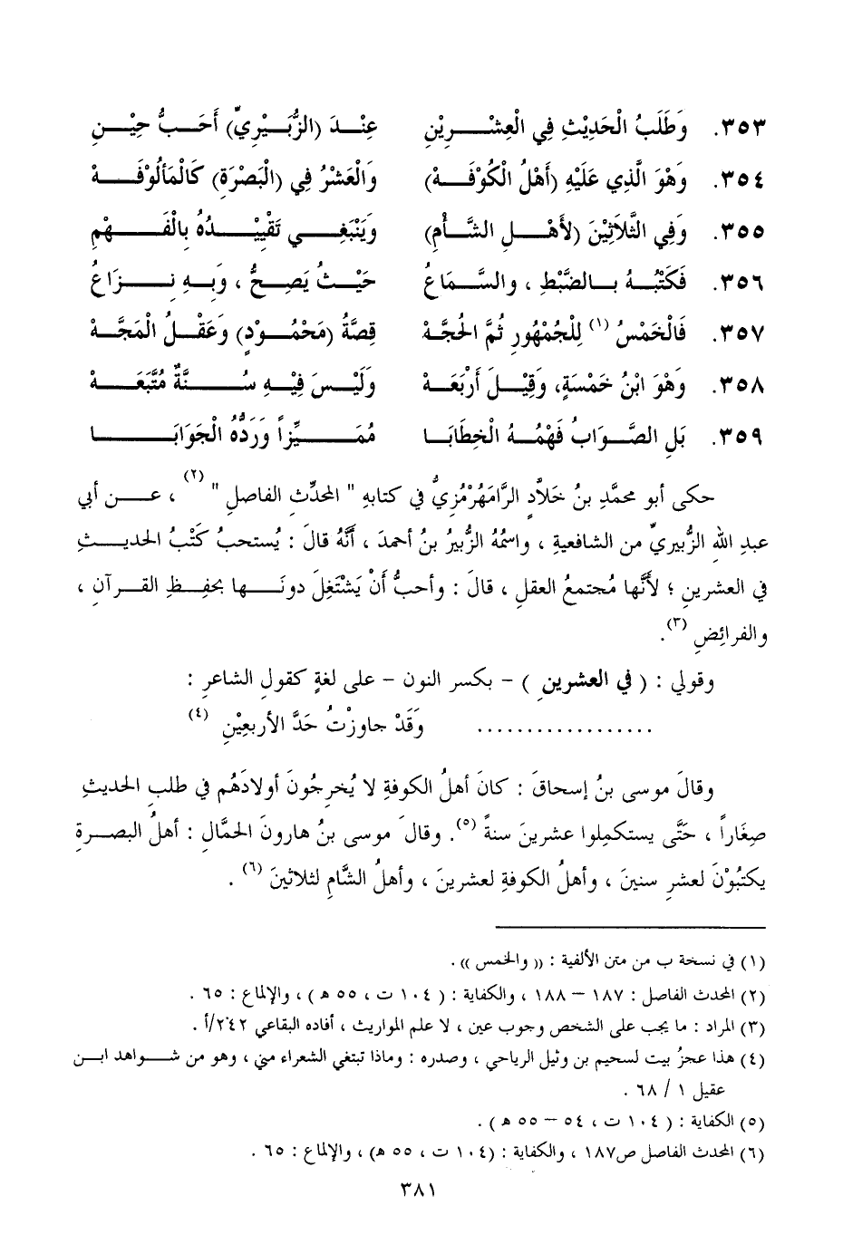 353.... وَطَلَبُ الْحَدِيْثِ فِي الْعِشْرِيْنِ ... عِنْدَ (الزُّبَيْرِيِّ) أَحَبُّ حِيْنِ