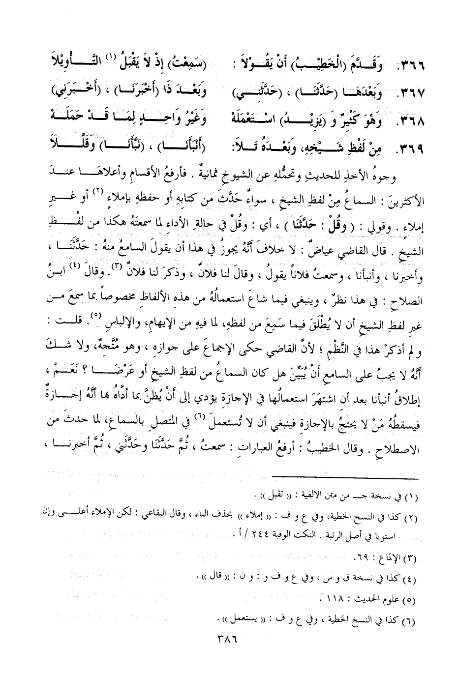 369.... مِنْ لَفْظِ شَيْخِهِ، وَبَعْدَهُ تَلاَ: ... (أَنْبَأَنَا) ، (نَبَّأَنَا) وَقَلَّلاَ