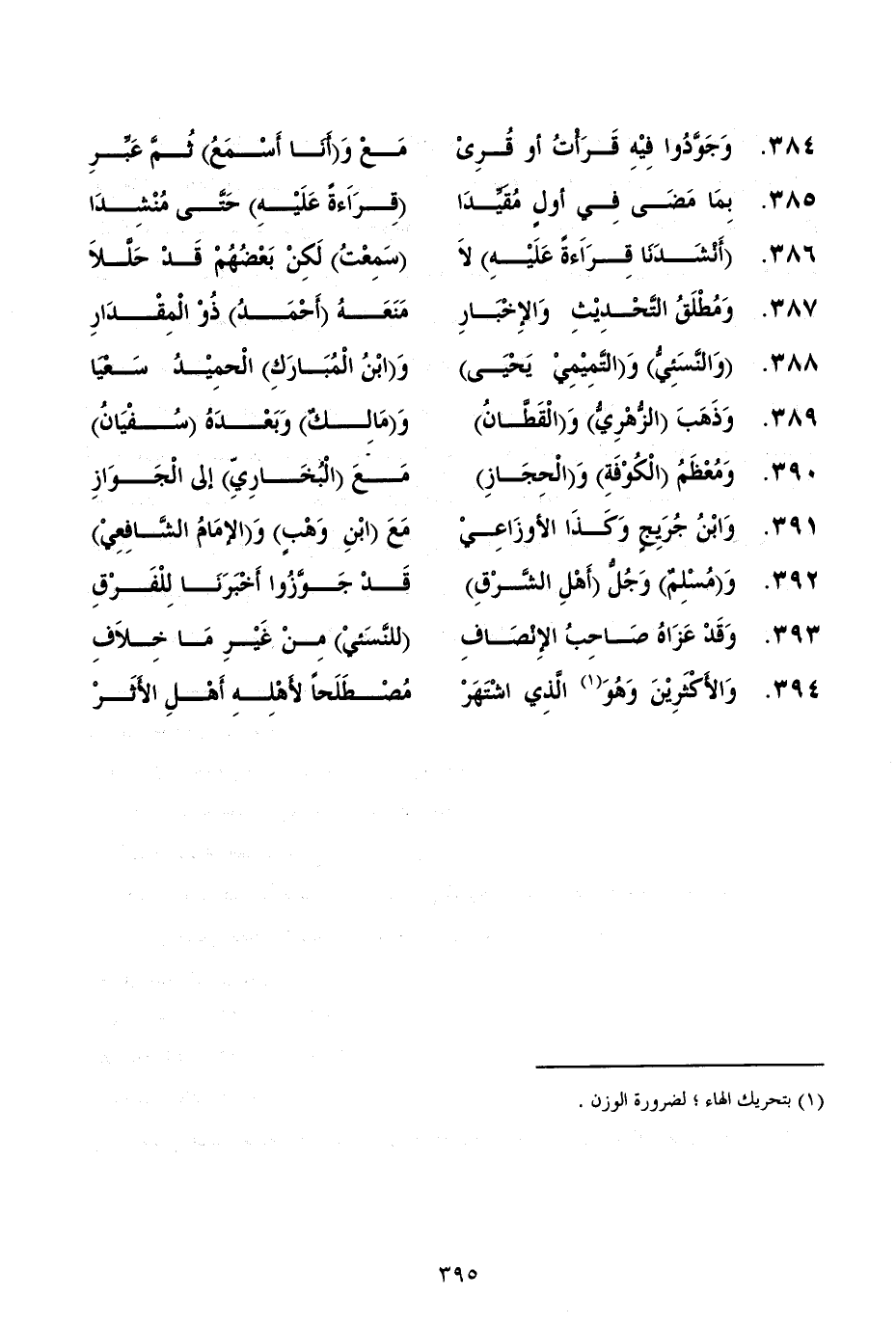 391.... وَابْنُ جُرَيِجٍ وَكَذَا الأوزَاعِيْ ... مَعَ (ابْنِ وَهْبٍ) وَ (الإمَامُ الشَّافِعِيْ)