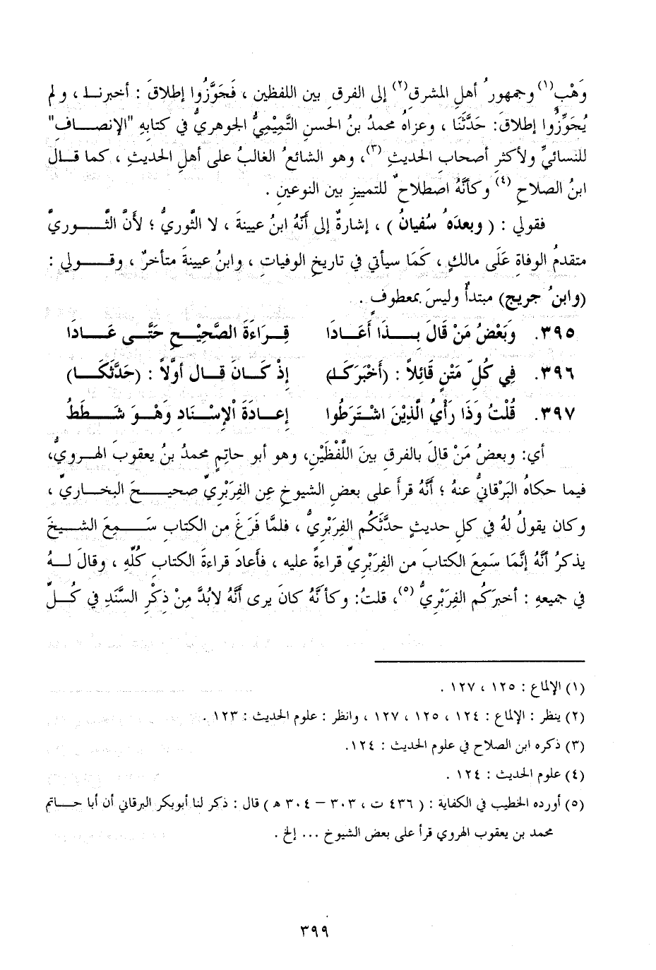 395.... وَبَعْضُ مَنْ قَالَ بِذَا أَعَادَا ... قِرَاءَةَ الصَّحِيْحِ حَتَّى عَادَا