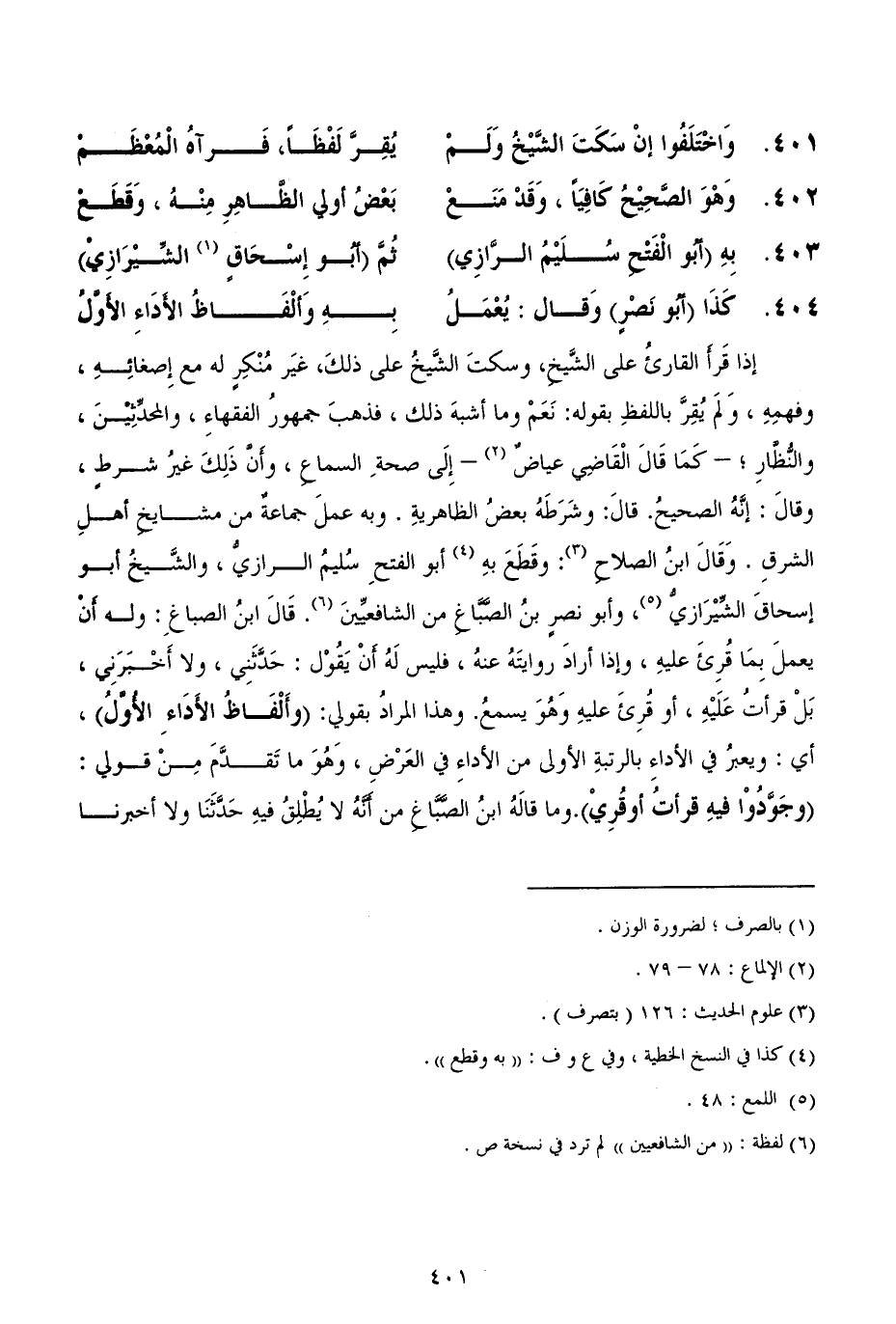 404.... كَذَا (أبُو نَصْرٍ) وَقال: يُعْمَلُ ... بِهِ وَألْفَاظُ الأَدَاءِ الأَوَّلُ
