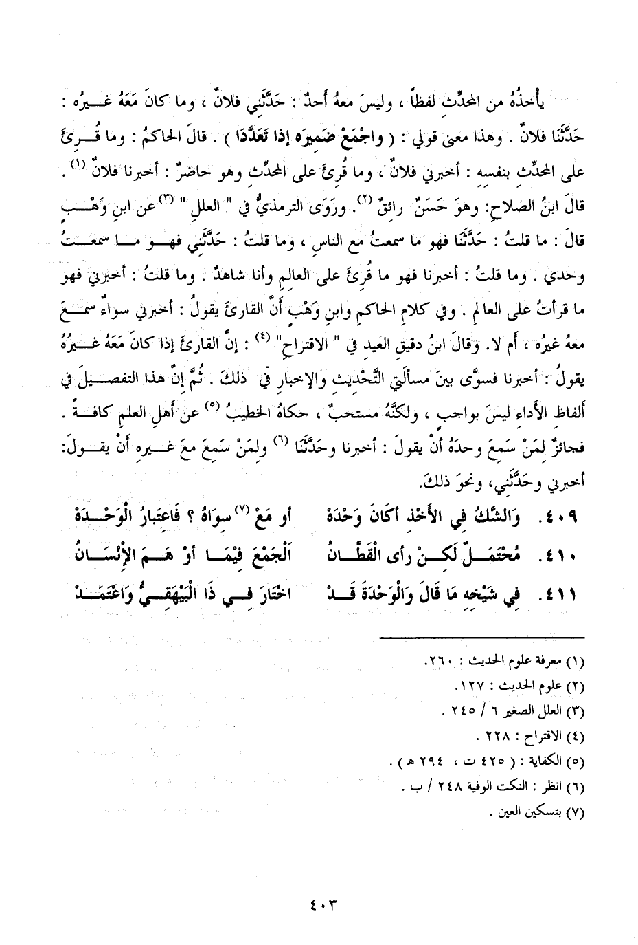 يأْخذُهُ من المحدِّثِ لفظاً، وليسَ معهُ أَحدٌ: حَدَّثَنِي فلانٌ، وما كانَ مَعَهُ غيرُه: حَدَّثَنَا فلانٌ. وهذا معنى قولي: (واجْمَعْ ضَمِيرَه إذا تَعَدَّدَا) . قالَ الحاكمُ: وما قُرِئَ على المحدِّثِ بنفسِهِ: أخبرني فلانٌ، وما قُرِئَ على المحدِّثِ وهو حاضرٌ: أخبرنا فلانٌ. قالَ ابنُ الصلاحِ: وهوَ حَسَنٌ رائِقٌ. ورَوَى الترمذيُّ في " العللِ " عن ابنِ وَهْبٍ قالَ: ما قلتُ: حَدَّثَنَا فهو ما سمعتُ مع الناسِ، وما قلتُ: حَدَّثَنِي فهو ما سمعتُ وحدي. وما قلتُ: أخبرنا فهو ما قُرِئَ على العالِمِ وأنا شاهدٌ. وما قلتُ: أخبرني فهو ما قرأتُ على العالمِ. وفي كلامِ الحاكمِ وابنِ وَهْبٍ أَنَّ القارئَ يقولُ: أخبرني سواءٌ سمعَ معهُ غيرُه، أَم لا. وقالَ ابنُ دقيقِ العيدِ في " الاقتراحِ": إنَّ القارئَ إذا كانَ مَعَهُ غيرُهُ يقولُ: أخبرنا فسوَّى بينَ مسألَتي التَّحْدِيثِ والإخبارِ في ذلكَ. ثُمَّ إِنَّ هذا التفصيلَ في أَلفاظِ الأَداءِ ليسَ بواجبٍ، ولكنَّهُ مستحبٌ، حكاهُ الخطيبُ عن أَهلِ العلمِ كافةً. فجائزٌ لِمَنْ سَمِعَ وحدَهُ أنْ يقولَ: أخبرنا وحَدَّثَنَا ولِمَنْ سَمِعَ معَ غيرهِ أَنْ يقولَ: أخبرني وحَدَّثَنِي، ونحوَ ذلكَ.