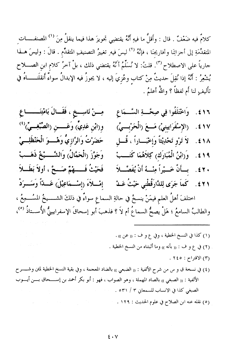 كلامٌ فيه ضَعْفٌ. قال: وأَقلُّ ما فيهِ أَنَّهُ يقتضِي تجويزَ هذا فيما ينقلُ مِنَ المصنفاتِ المتقدِّمَةِ إلى أجزائِنَا وتخاريجِنَا، فإنَّهُ ليسَ فيهِ تغييرُ التصنيفِ المتقدِّمِ. قالَ: وليسَ هذا جارياً على الاصطلاح. قلتُ: لا نُسَلِّمُ أَنَّهُ يقتضي ذلك، بلْ آخرُ كلامِ ابنِ الصلاح يُشْعِرُ: أَنَّهُ إذا نُقِلَ حديثٌ مِنْ كتابٍ وعُزِيَ إليه، لا يجوزُ فيه الإبدالُ سواءٌ أَنقلَناهُ في تأَليفٍ لنا أَم لفظاً؟ واللهُ أعلمُ.