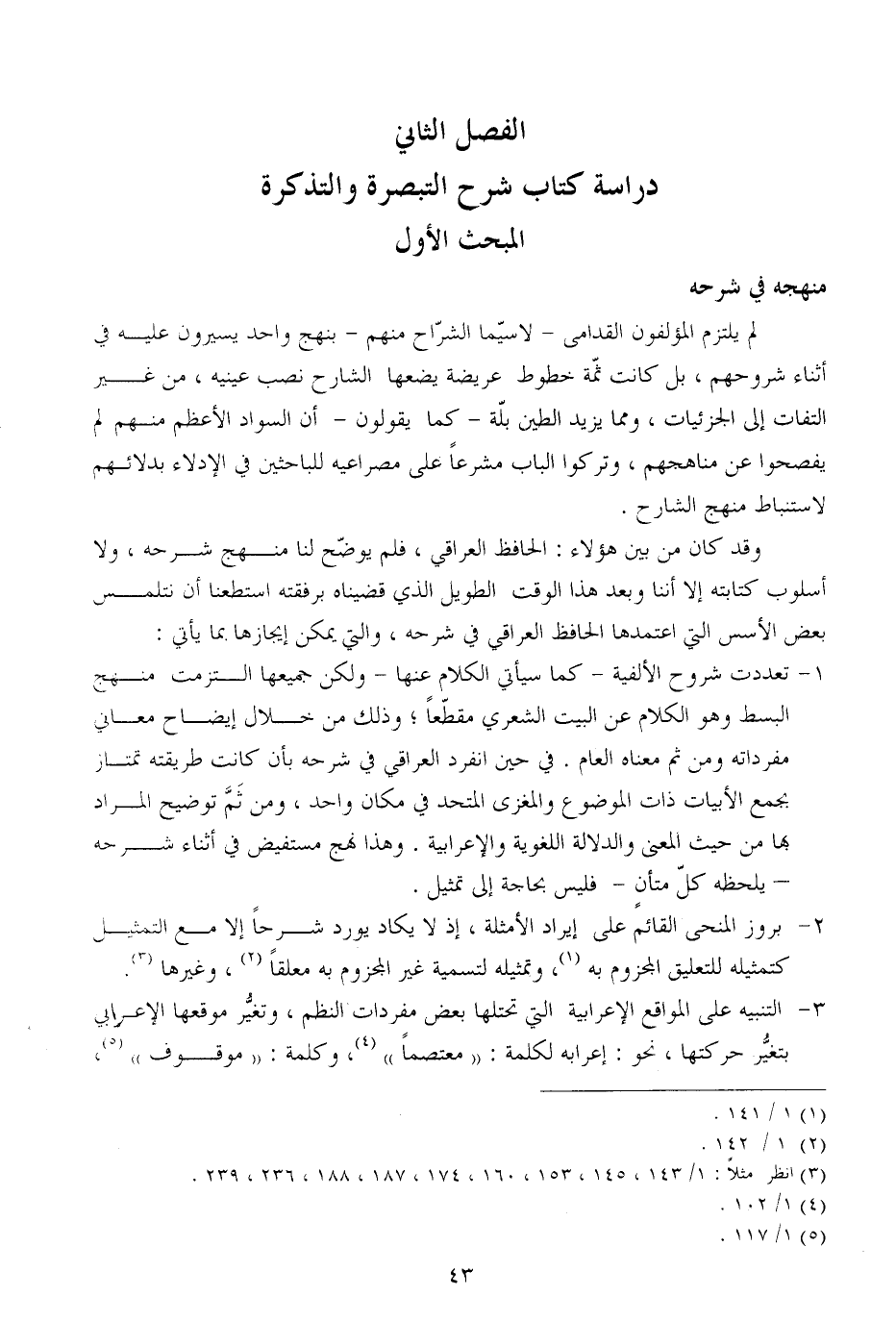 الفصل الثاني: دراسة كتاب شرح التبصرة والتذكرة