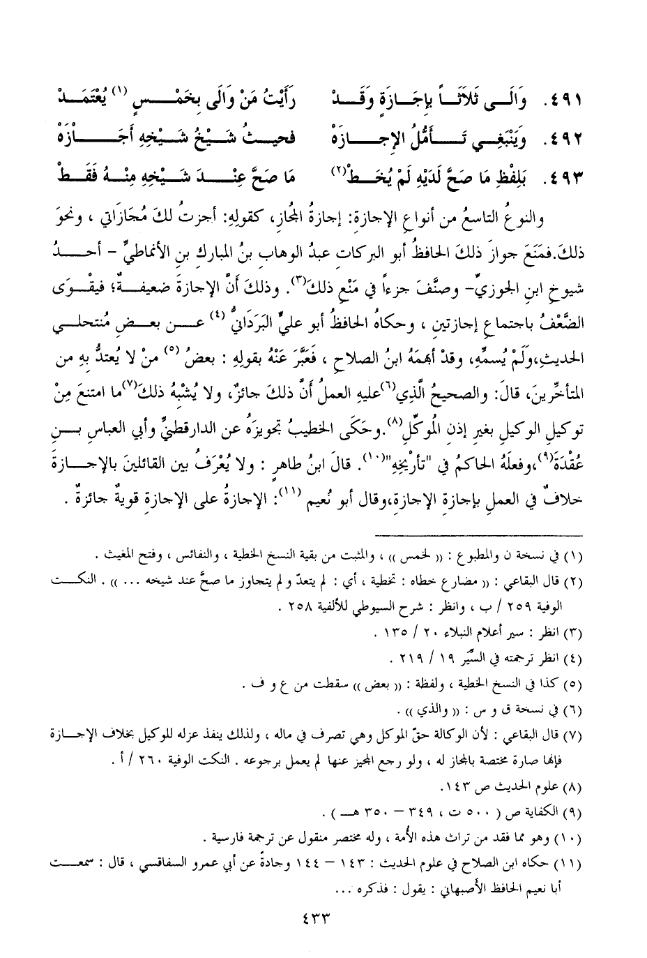 492.... وَيَنْبَغِي تَأَمُّلُ الإِجازَهْ ... فحيثُ شَيْخُ شَيْخِهِ أَجَاْزَهْ