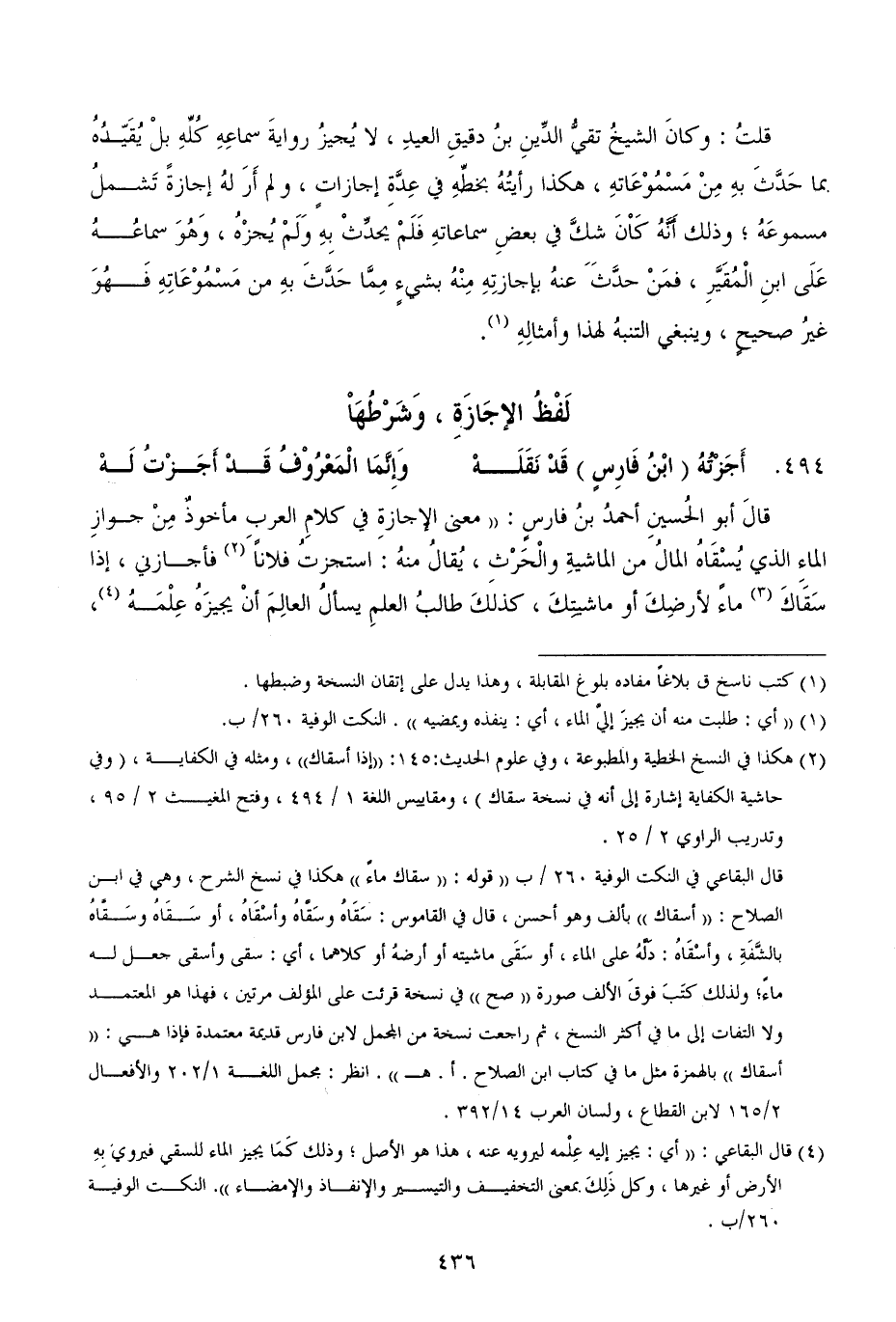 494.... أَجَزْتُهُ (ابْنُ فَارِسٍ) قَدْ نَقَلَهْ ... وَإِنَّمَا الْمَعْرُوْفُ قَدْ أَجَزْتُ لَهْ