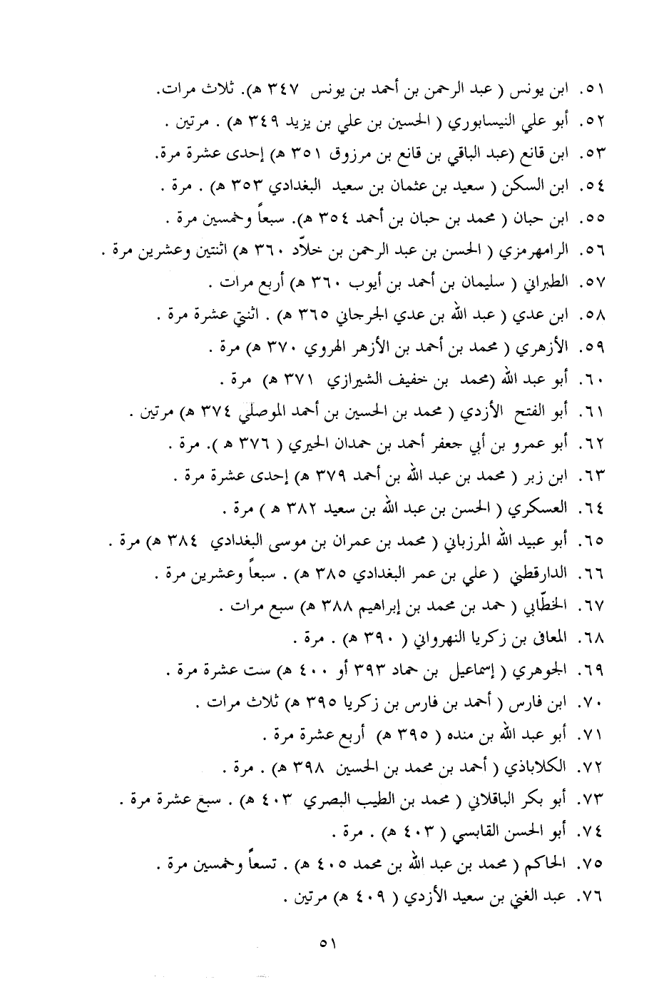 51. ابن يونس (عبد الرحمن بن أحمد بن يونس 347 هـ) . ثلاث مرات.