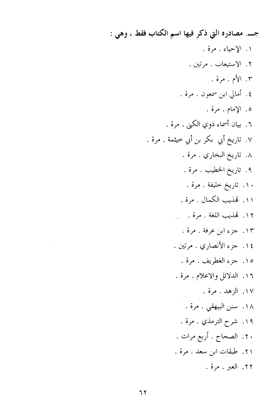 جـ. مصادره التي ذكر فيها اسم الكتاب فقط، وهي: