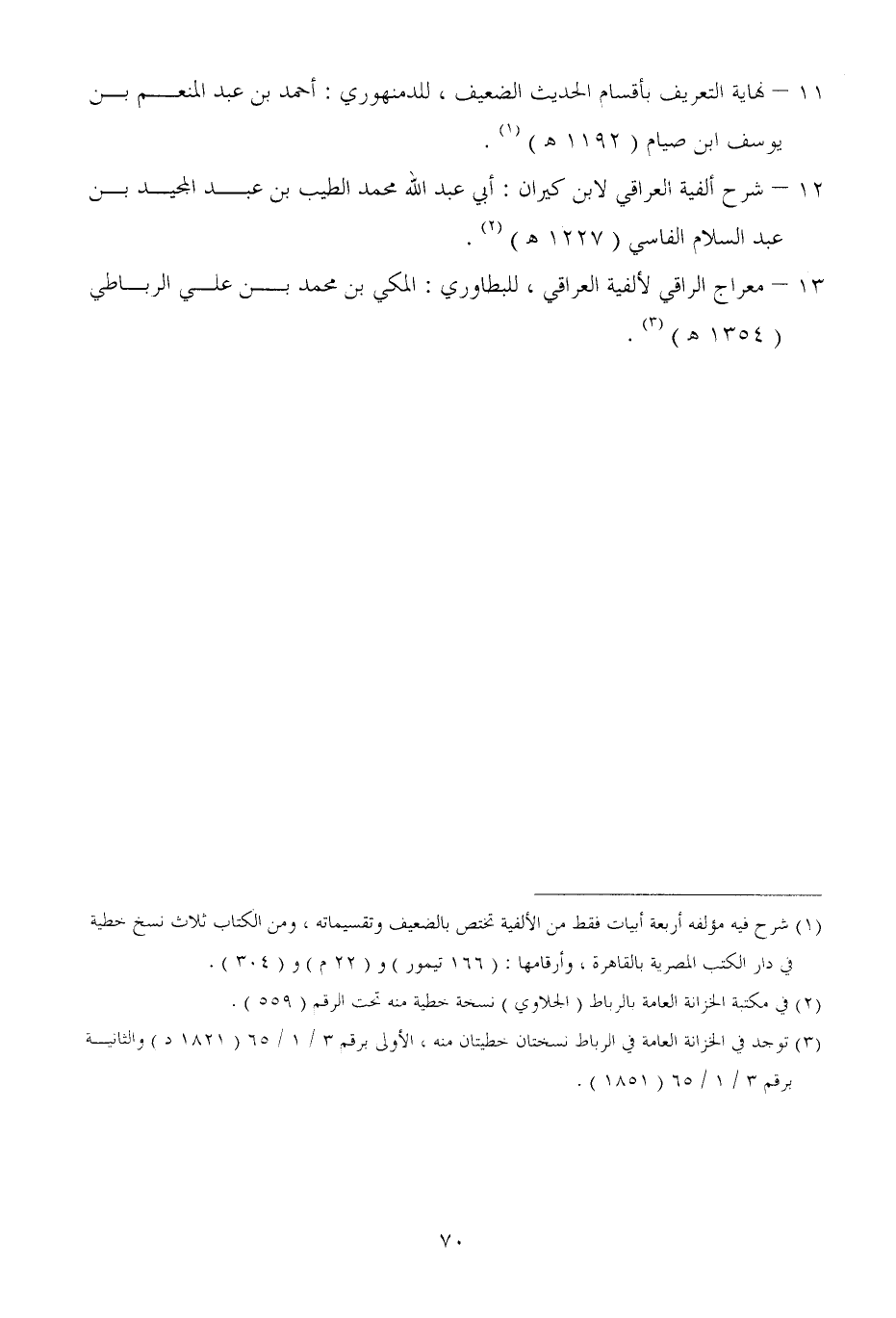 11 - نهاية التعريف بأقسام الحديث الضعيف، للدمنهوري: أحمد بن عبد المنعم بن يوسف ابن صيام (1192 هـ) .