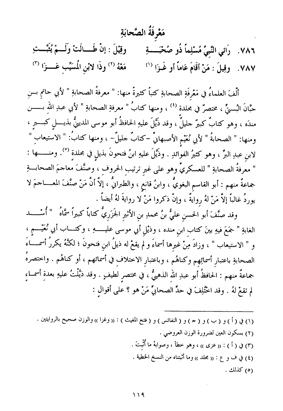 وقد صنَّفَ أبو الحسنِ عليُّ بنُ محمدِ بنِ الأثيرِ الجَزَرِيُّ كتاباً كبيراً سمَّاهُ أُسْد الغابةِ جمَعَ فيهِ بينَ كتابِ ابنِ منده، وذيْلِ أبي موسى عليهِ، وكتاب أبي نُعَيْمٍ، والاستيعاب، وزادَ مِنْ غيرِها أسماءَ ولم يقعْ له ذيلُ ابنِ فتحونَ؛ لكنَّهُ يكررُ أسماءَ الصحابةِ باعتبارِ أسمائِهِم وكناهُم، وباعتبارِ الاختلافِ في أسمائهم، أو كناهُم واختصرهُ جماعةٌ منهم الحافظُ أبو عبدِ اللهِ الذهبيُّ، في مختصرٍ لطيفٍ وقد ذيَّلْتُ عليهِ بعدةِ أسماءٍ لم تقعْ لهُ وقد اخْتُلِفَ في حدِّ الصحابيِّ مَنْ هو؟ على أقوالٍ