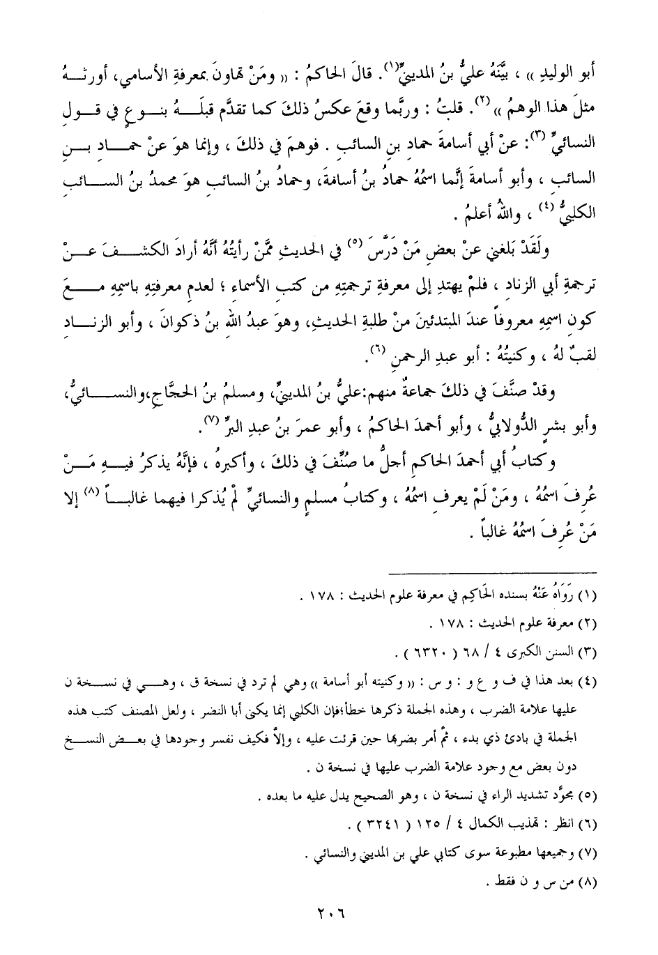 وكتابُ أبي أحمدَ الحاكمِ أجلُّ ما صُنِّفَ في ذلكَ، وأكبرهُ، فإنَّهُ يذكرُ فيهِ مَنْ عُرِفَ اسمُهُ، ومَنْ لَمْ يعرفِ اسمُهُ، وكتابُ مسلمٍ والنسائيِّ لمْ يُذكرا فيهما غالباً إلا مَنْ عُرِفَ اسمُهُ غالباً.