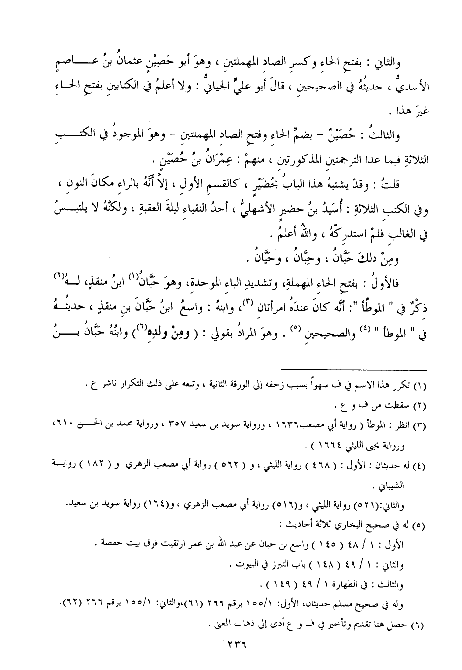 فالأولُ: بفتحِ الحاءِ المهملةِ، وتشديدِ الباءِ الموحدةِ، وهوَ حَبَّانُ ابنُ منقذٍ، لهُ ذِكْرٌ في " الموطَّأ ": أنَّه كانَ عندَهُ امرأتانِ، وابنهُ: واسعُابنُ حَبَّانَ بنِ منقذٍ، حديثُهُ في " الموطأ "والصحيحينِ. وهوَ المرادُ بقولي: (ومِنْ ولدِهِ) وابنُهُ حَبَّانُ بنُ