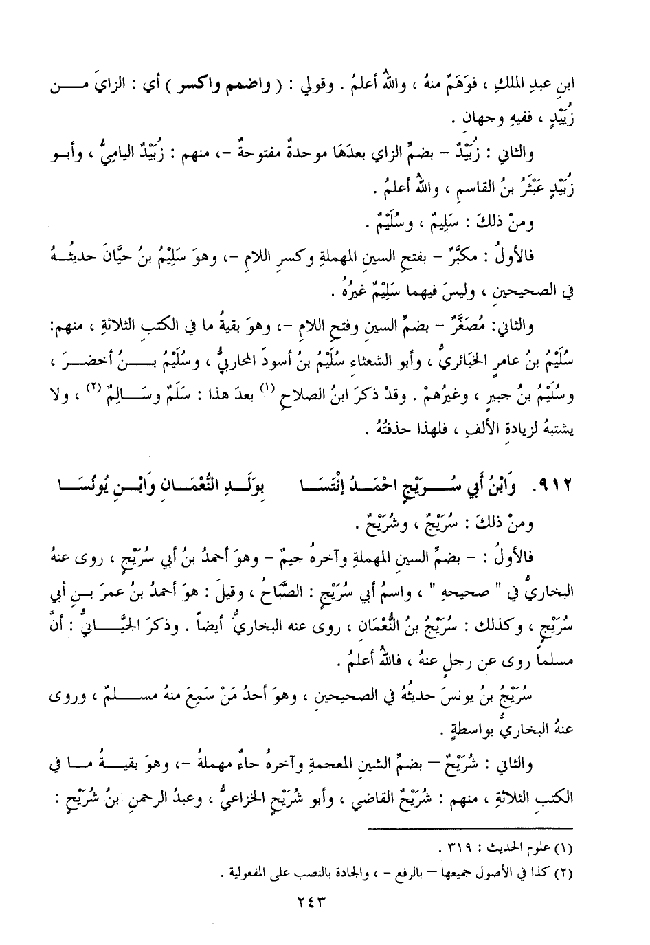 912.... وَابْنُ أَبي سُرَيْجٍ احْمَدُ إئْتَسَا ... بِوَلَدِ النُّعْمَانِ وَابْنِ يُونُسَا