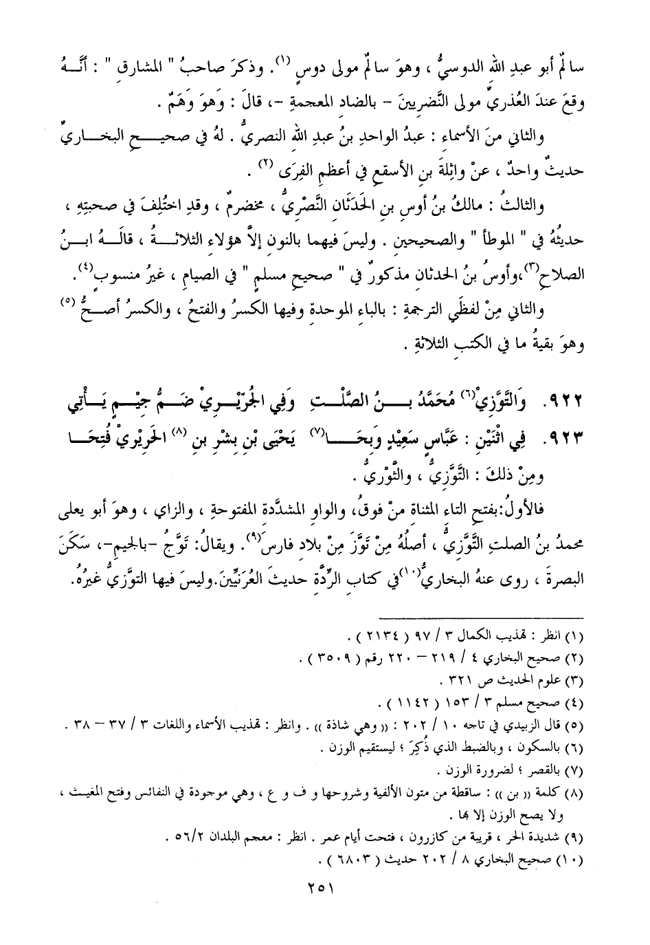 922.... وَالتَّوَّزِيْ مُحَمَّدُ بنُ الصَّلْتِ ... وَفِي الجُرَيْرِيْ ضَمُّ جِيْمٍ يَأْتِي