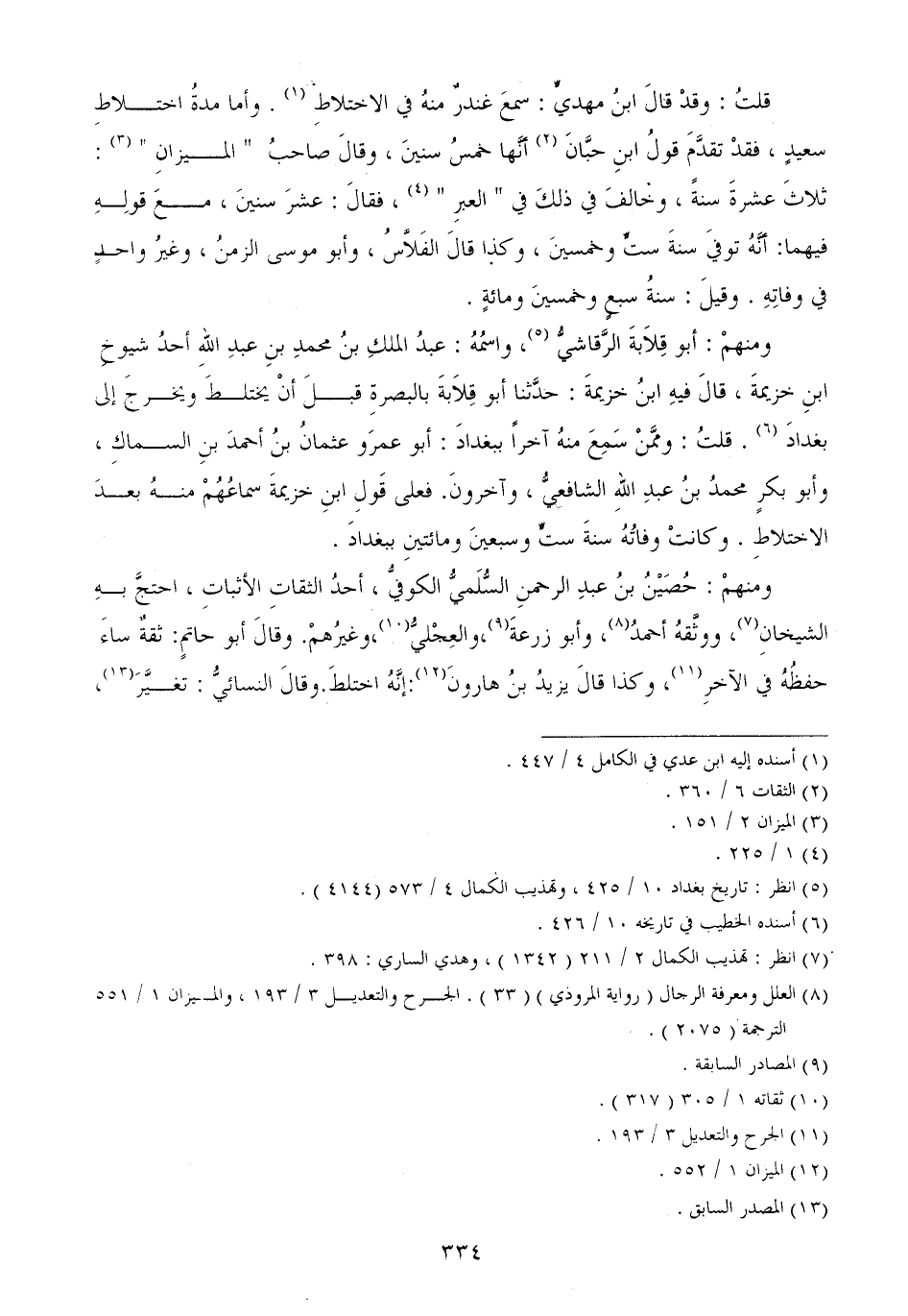 ومنهمْ: حُصَيْنُ بنُ عبدِ الرحمنِ السُّلَميُّ الكوفيُّ، أحدُ الثقاتِ الأثباتِ، احتجَّ بهِ الشيخانِ، ووثَّقهُ أحمدُ، وأبو زرعةَ، والعِجْليُّ، وغيرُهمْ. وقالَ أبو حاتمٍ: ثقةٌ ساءَ حفظُهُ في الآخرِ، وكذا قالَ يزيدُ بنُ هارونَ: إنَّهُ اختلطَ. وقالَ النسائيُّ: تغيَّرَ،