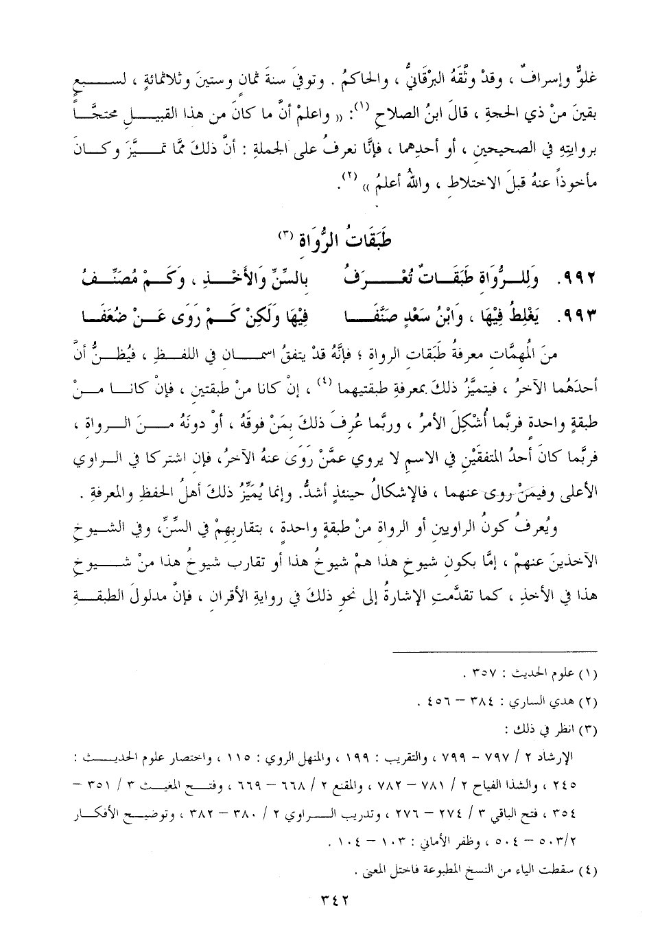 992.... وَلِلرُّوَاةِ طَبَقَاتٌ تُعْرَفُ ... بِالسِّنِّ وَالأَخْذِ، وَكَمْ مُصَنِّفُ