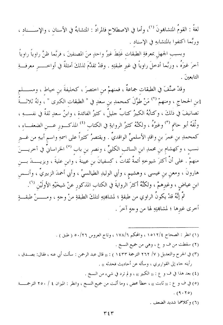 وقدْ صنَّفَ في الطبقاتِ جماعةٌ، فمنهمْ منِ اختصرَ، كخليفةَ بنِ خياطٍ، ومسلمِ بنِ الحجاجِ، ومنهمْ مَنْ طوَّلَ كمحمدِ بنِ سعدٍ في " الطبقاتِ الكبرى "، ولهُ ثلاثةُ تصانيفَ في ذلكَ، وكتابُهُ الكبيرُ كتابٌ جليلٌ، كثيرُ الفائدةِ، وابنُ سعدٍ ثقةٌ في نفسهِ، وثَّقَهُ أبو حاتمٍ وغيرُهُ، ولكنَّهُ كثيرُ الروايةِ في الكتابِ المذكورِ عنِ الضعفاءِ، كمحمدِ بنِ عمرَ بنِ واقدٍ الأسلميِّ الواقديِّ. ويقتصرُ كثيراً على اسمهِ واسمِ أبيهِ من غيرِ نسبٍ، وكهشامِ بنِ محمدِ ابنِ السائبِ الكلبيِّ، ونصرِ بنِ بابٍ الخراسانيِّ في آخرينَ منهمْ. على أنَّ أكثرَ شيوخهِ أئمةٌ ثقاتٌ، كسفيانَ بنِ عيينةَ، وابنِ عليةَ، ويزيدَ بنِ هارونَ، ومعنِ بنِ عيسى، وهشيمٍ، وأبي الوليدِ الطيالسيِّ، وأبي أحمدَ الزبيريِّ، وأنسِ ابنِ عياضٍ، وغيرِهمْ، ولكنَّهُ أكثرَ الروايةَ في الكتابِ المذكورِ عنْ شيخَيْهِ الأولَيْنِ.