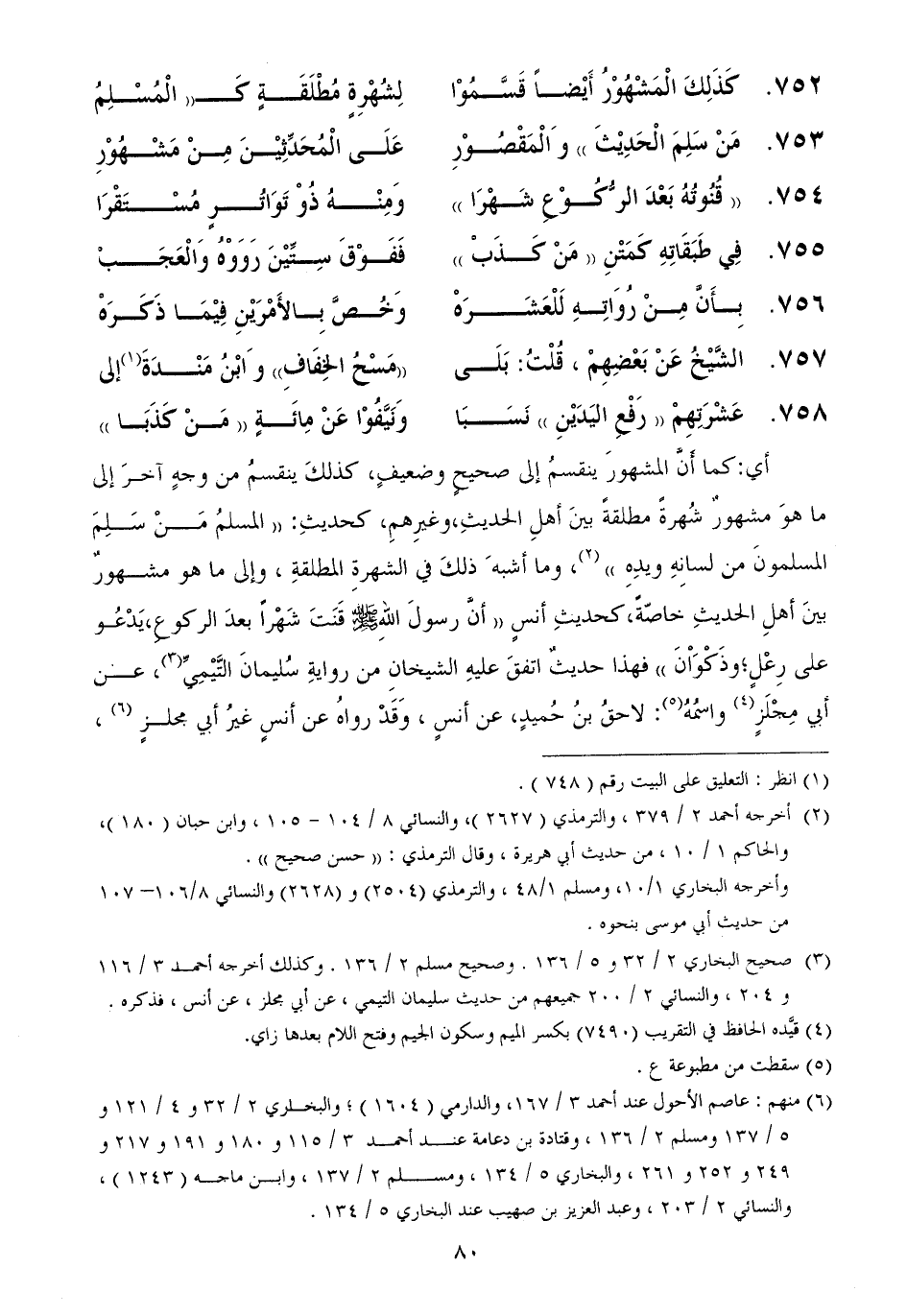 752.... كَذَلِكَ الْمَشْهُوْرُ أَيْضاً قَسَّمُوْا ... لِشُهْرِةٍ مُطْلَقَةٍ كَـ ((الْمُسْلِمُ
