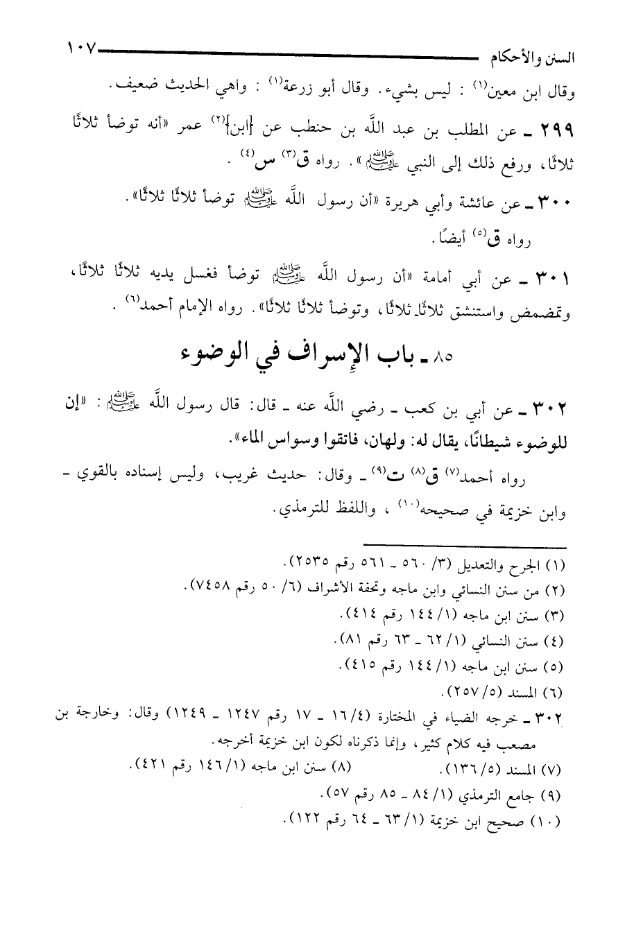 299 - عن المطلب بن عبد الله بن حنطب عن (ابن) (¬2) عمر "أنه توضأ ثلاثًا ثلاثًا، ورفع ذلك إلى النبي - صلى الله عليه وسلم -). رواه ق (¬3) س (¬4).
