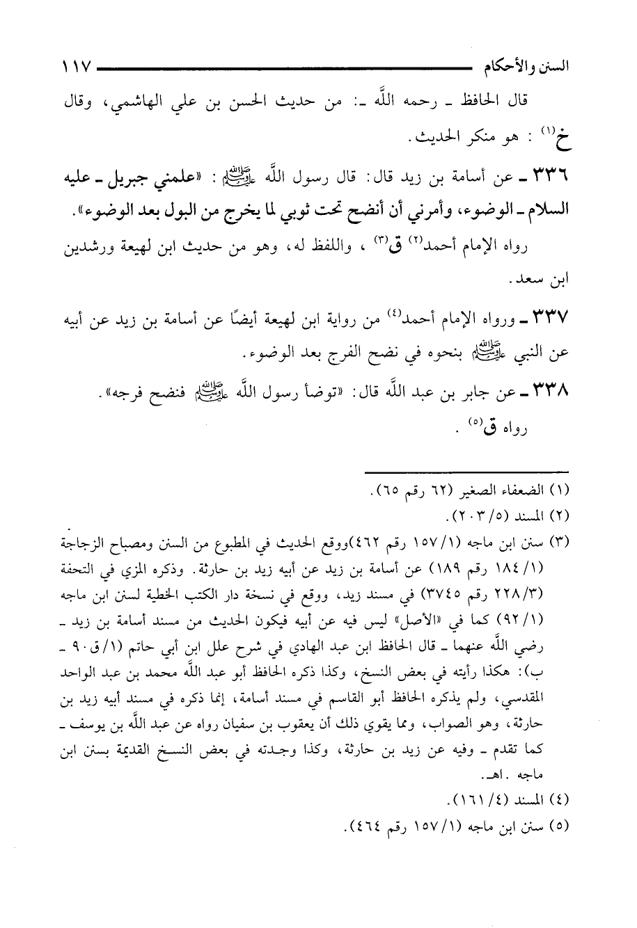337 - ورواه الإمام أحمد (¬4) من رواية ابن لهيعة أيضًا عن أسامة بن زيد عن أبيه عن النبي - صلى الله عليه وسلم - بنحوه في نضح الفرج بعد الوضوء.