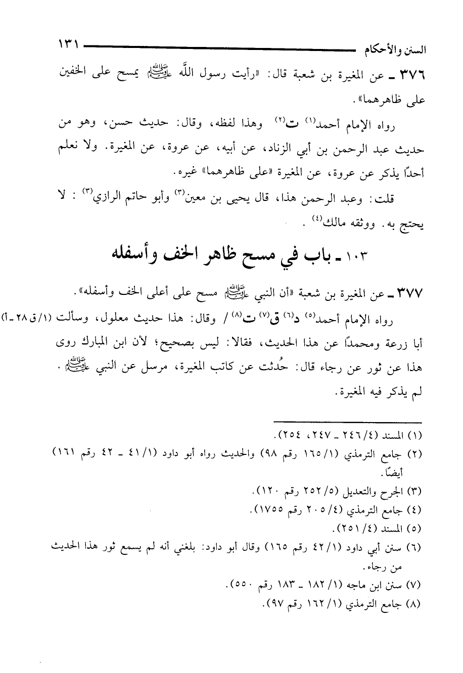 377 - عن المغيرة بن شعبة "أن النبي - صلى الله عليه وسلم - مسح على أعلى الخف وأسفله".