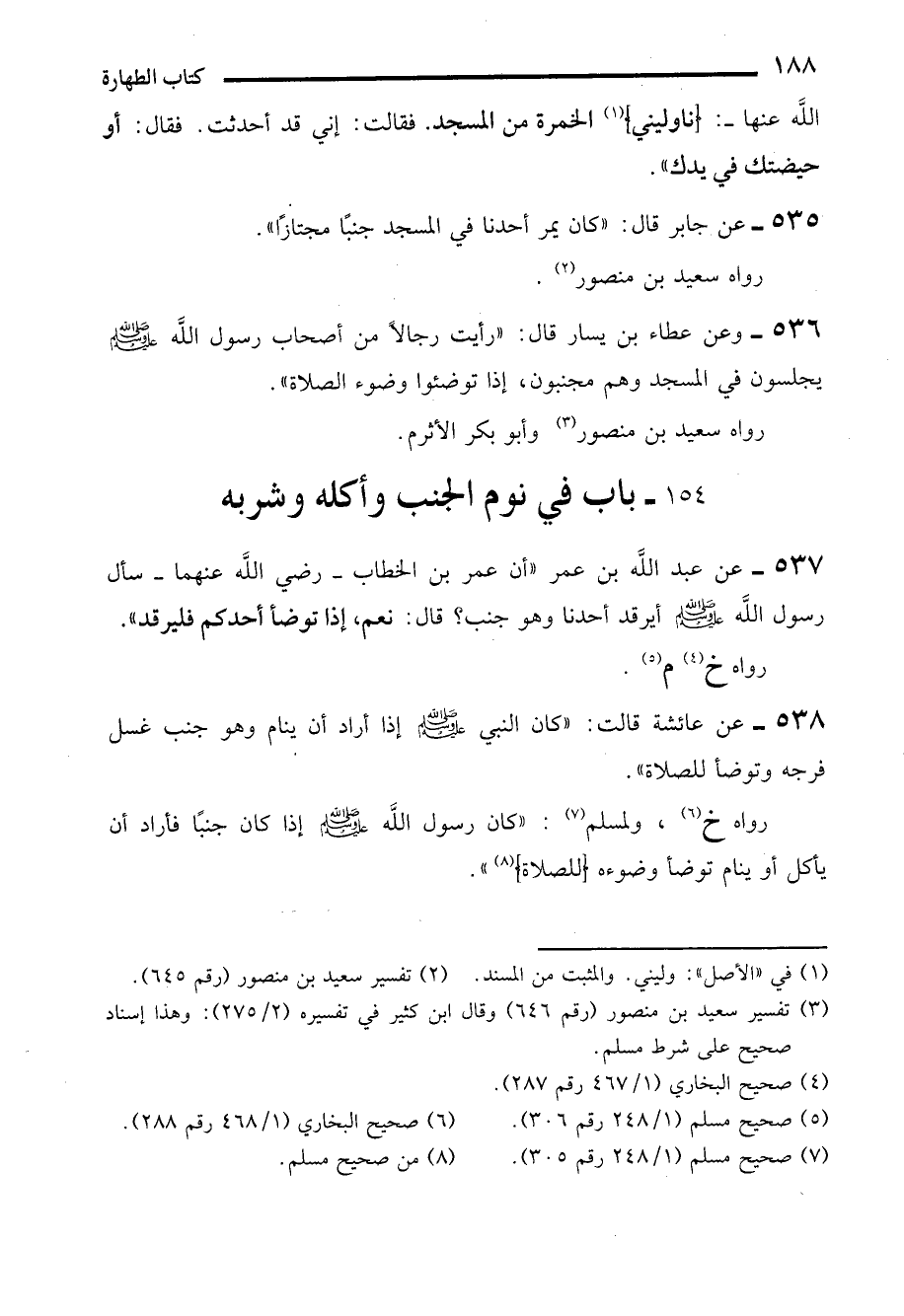 154 - باب في نوم الجنب وأكله وشربه