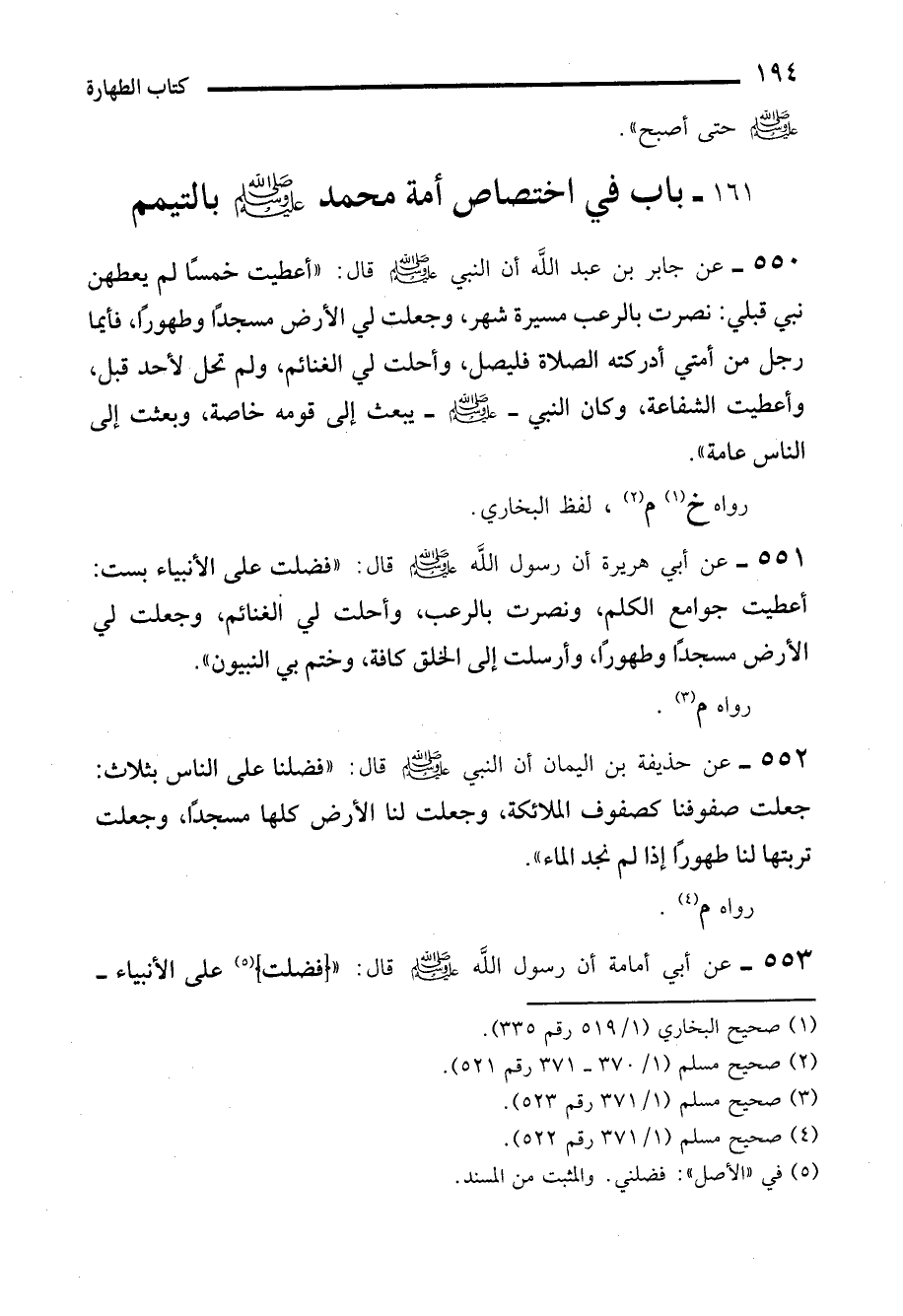 161 - باب في اختصاص أمة محمد - صلى الله عليه وسلم - بالتيمم
