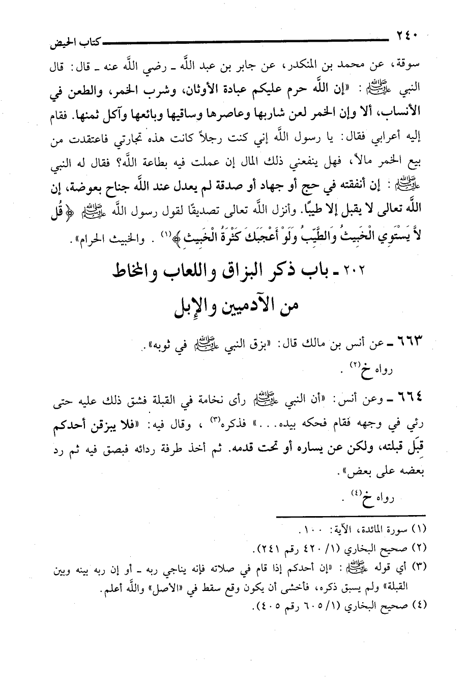 202 - باب ذكر البزاق واللعاب والنخاط من الآدميين والإِبل