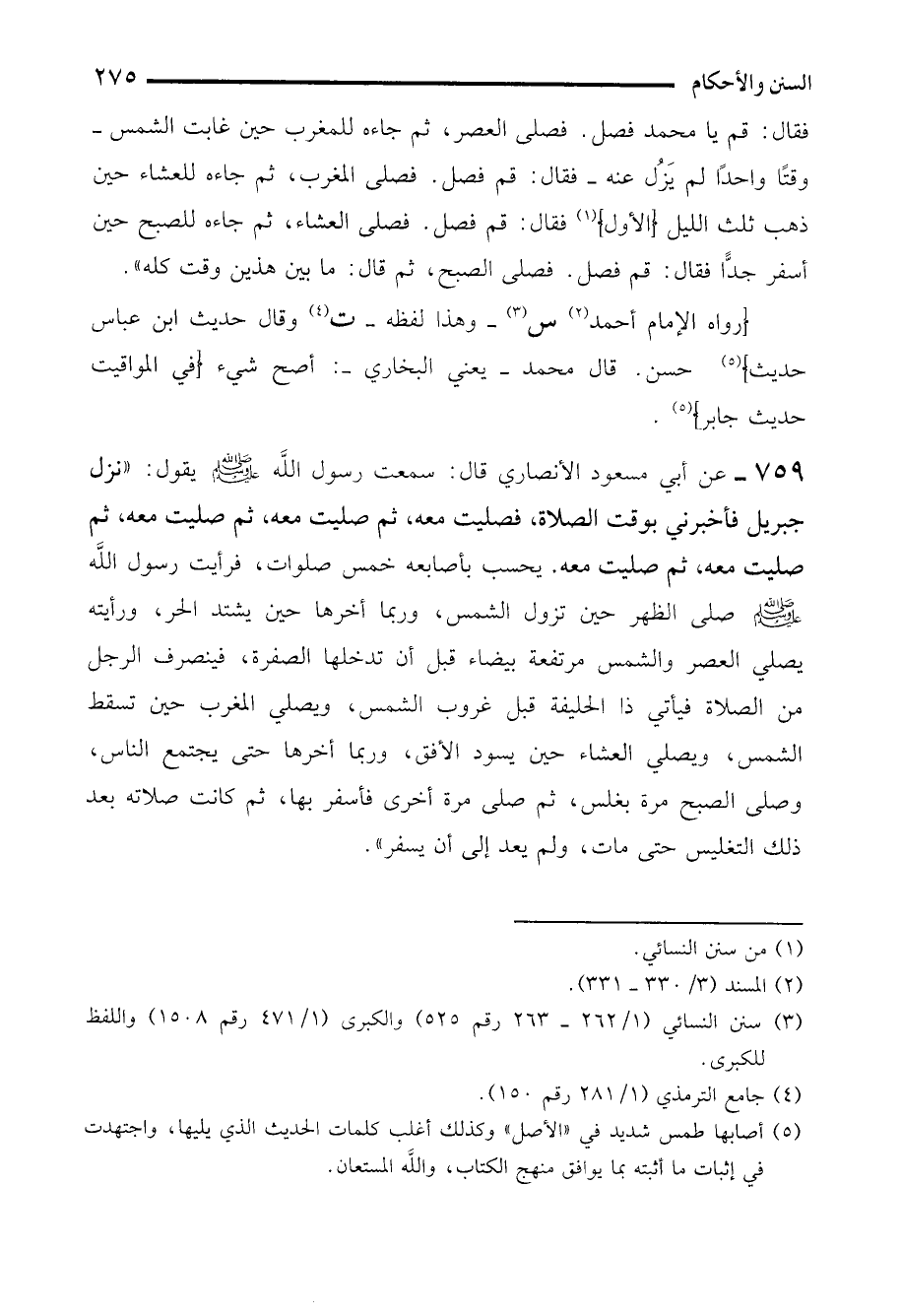 (¬3) سنن النسائي (1/ 262 - 263 رقم 525) والكبرى (1/ 471 رقم 1508) واللفظ للكبرى.