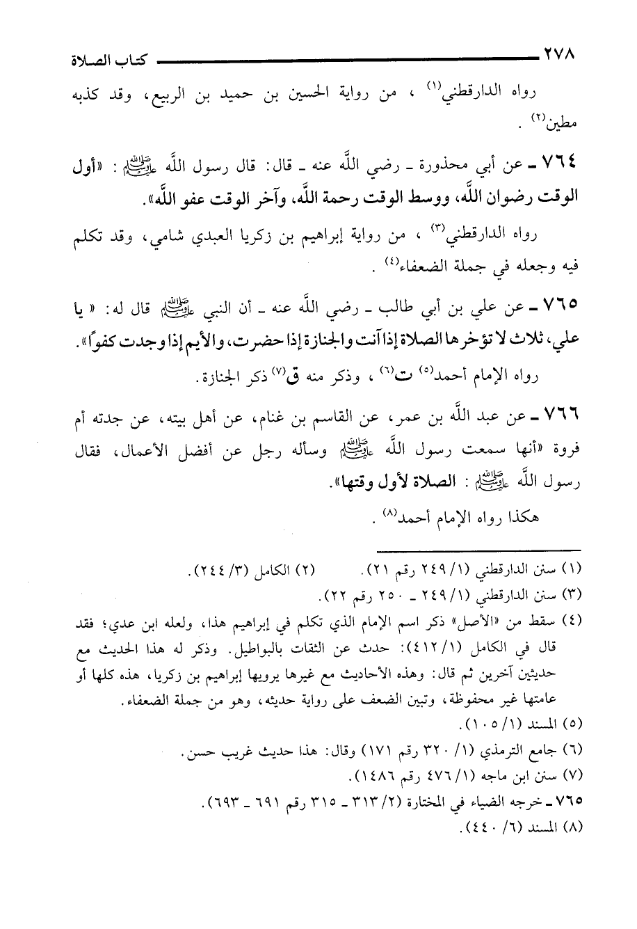 766 - عن عبد الله بن عمر، عن القاسم بن غنام، عن أهل بيته، عن جدته أم فروة "أنها سمعت رسول الله - صلى الله عليه وسلم - وسأله رجل عن أفضل الأعمال، فقال رسول الله - صلى الله عليه وسلم - الصلاة لأول وقتها".