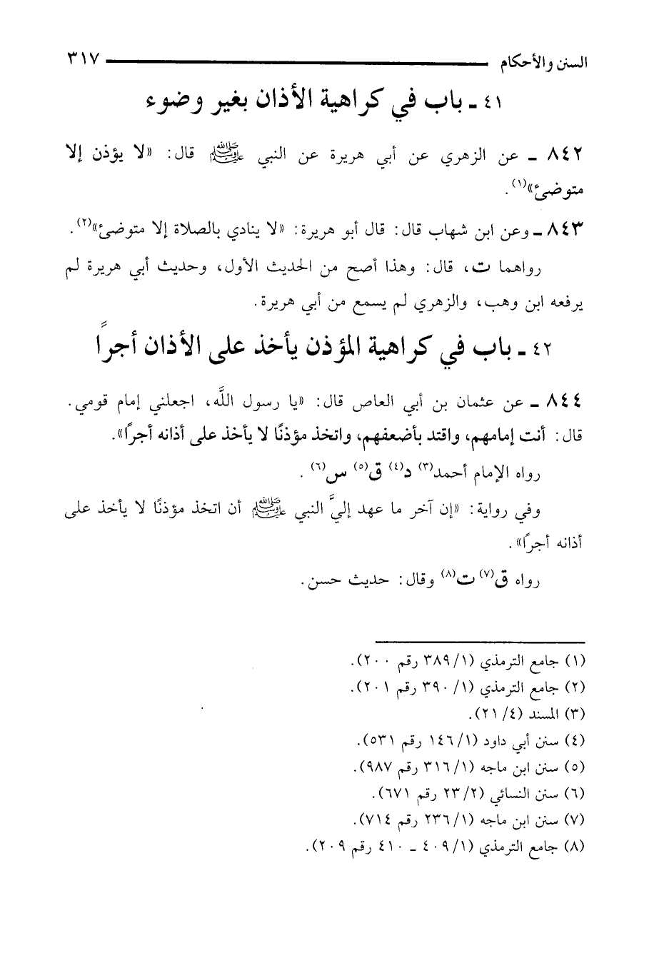 842 - عن الزهري عن أبي هريرة عن النبي - صلى الله عليه وسلم - قال: "لا يؤذن إلا متوضئ" (¬1).
