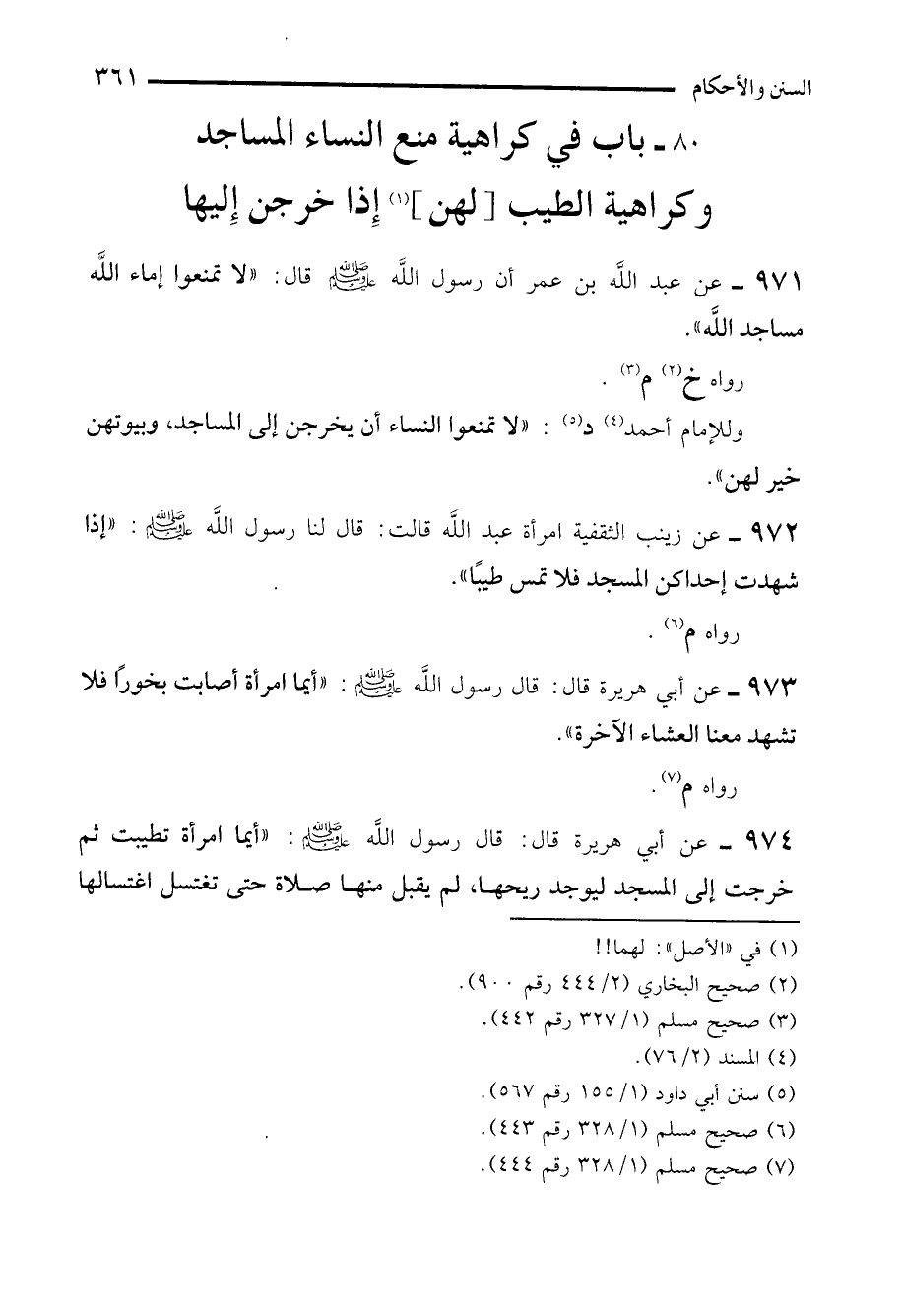 971 - عن عبد الله بن عمر أن رسول اللَّه - صلى الله عليه وسلم - قال: "لا تمنعوا إماء الله مساجد الله".