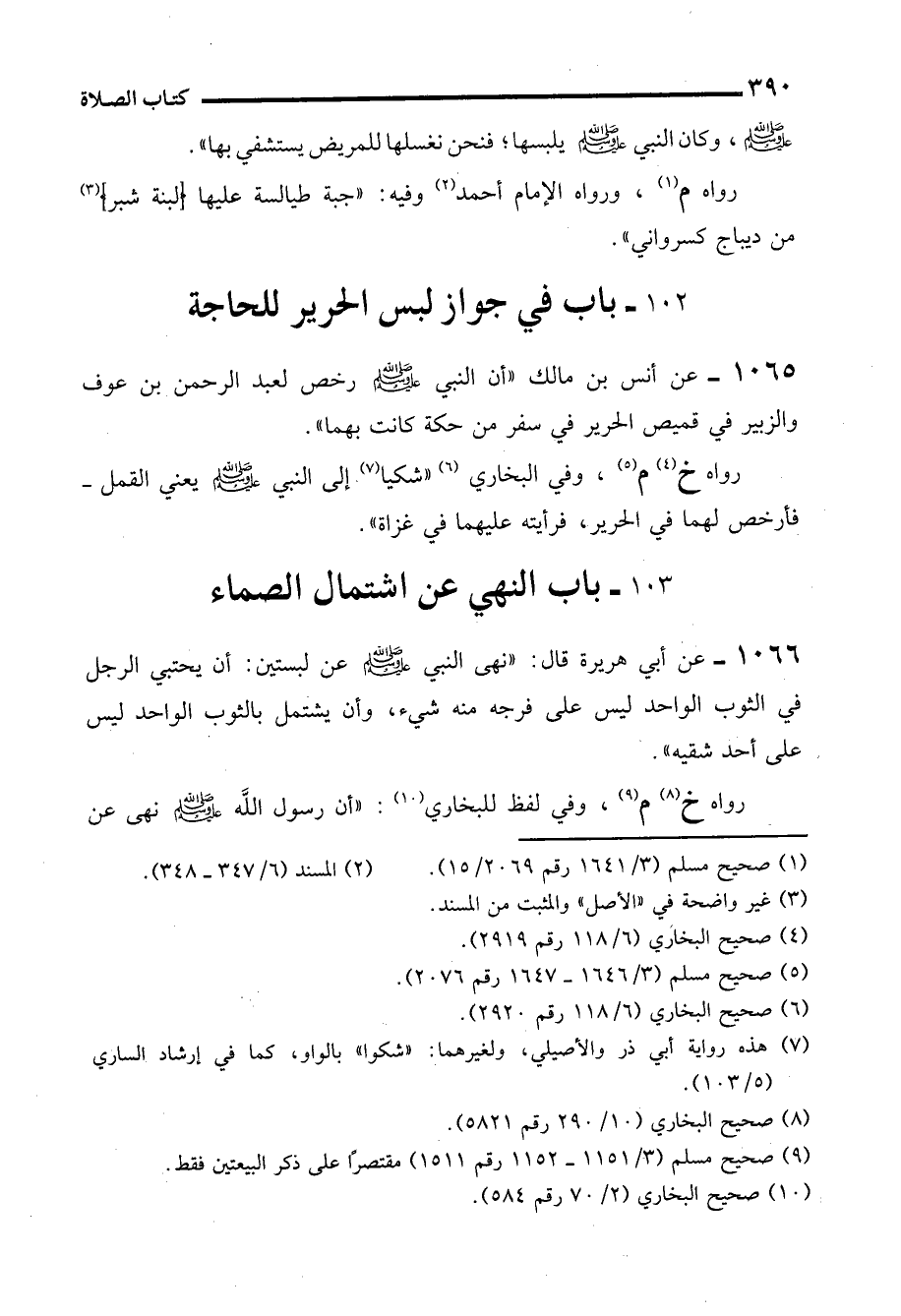 1065 - عن أنس بن مالك "أن النبي - صلى الله عليه وسلم رخص لعبد الرحمن بن عوف والزبير في قميص الحرير في سفر من حكة كانت بهما".