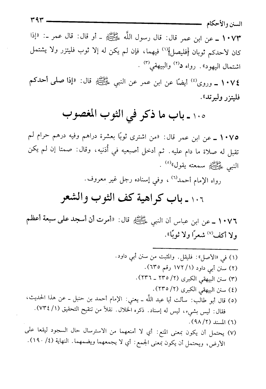 1076 - عن ابن عباس أن النبي - صلى الله عليه وسلم - قال: "أمرت أن أسجد على سبعة أعظم ولا أكف (¬7) شعرًا ولا ثوبًا".