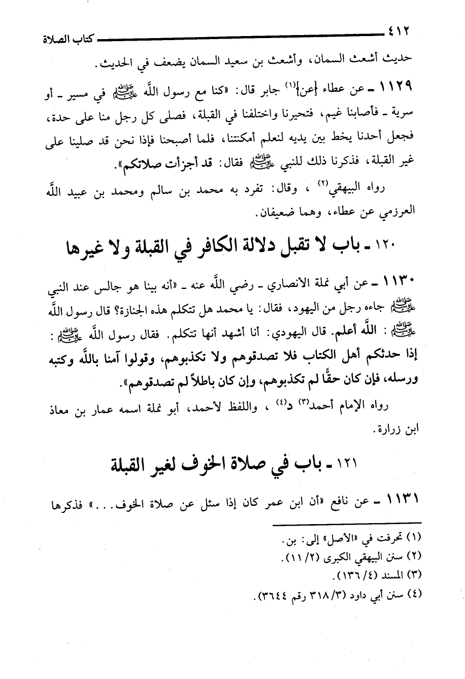 120 - باب لا تقبل دلالة الكافر في القبلة ولا غيرها