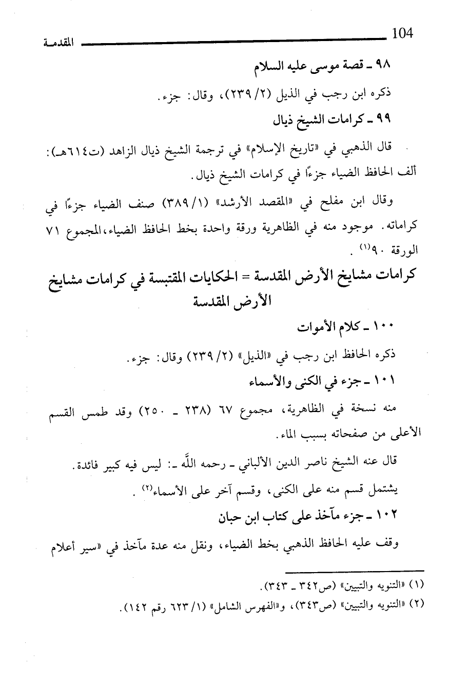 وقال ابن مفلح في "المقصد الأرشد" (1/ 389) صنف الضياء جزءًا في كراماته. موجود منه في الظاهرية ورقة واحدة بخط الحافظ الضياء، المجموع 71 الورقة 90 (¬1).