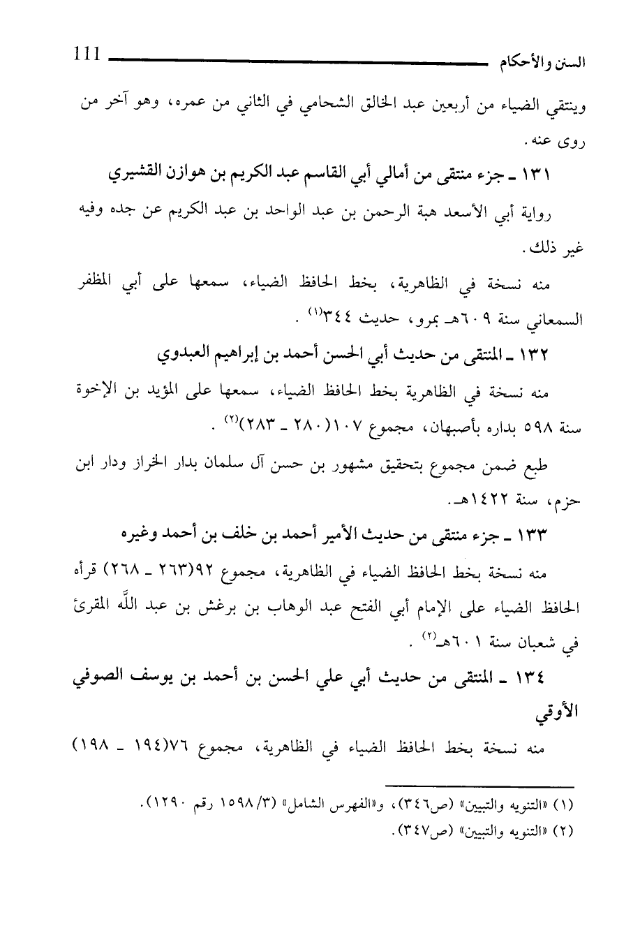 منه نسخة بخط الحافظ الضياء في الظاهرية، مجموع 76 (194 - 198)