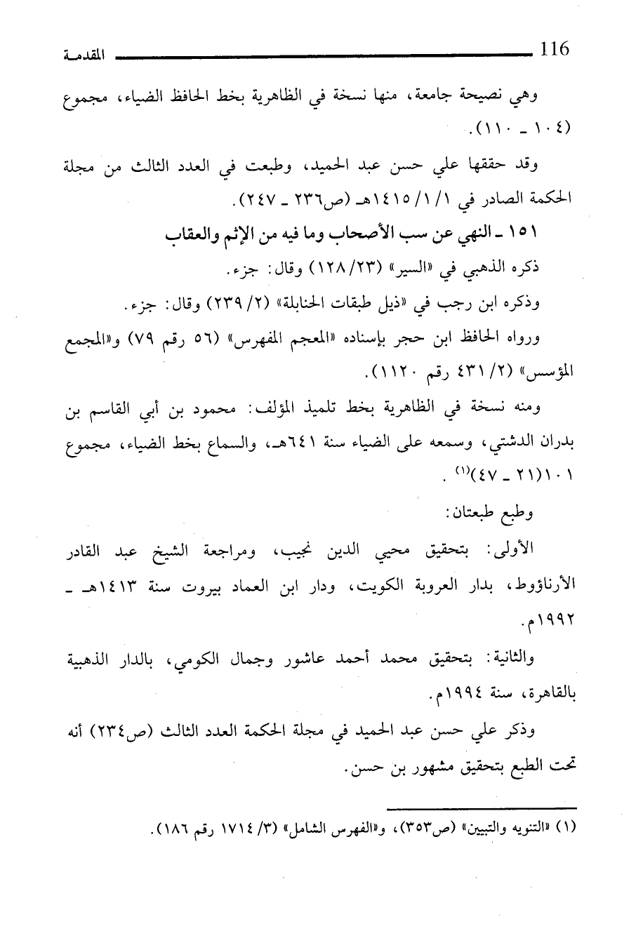 وذكر علي حسن عبد الحميد في مجلة الحكمة العدد الثالث (ص 234) أنه تحت الطبع بتحقيق مشهور بن حسن.
