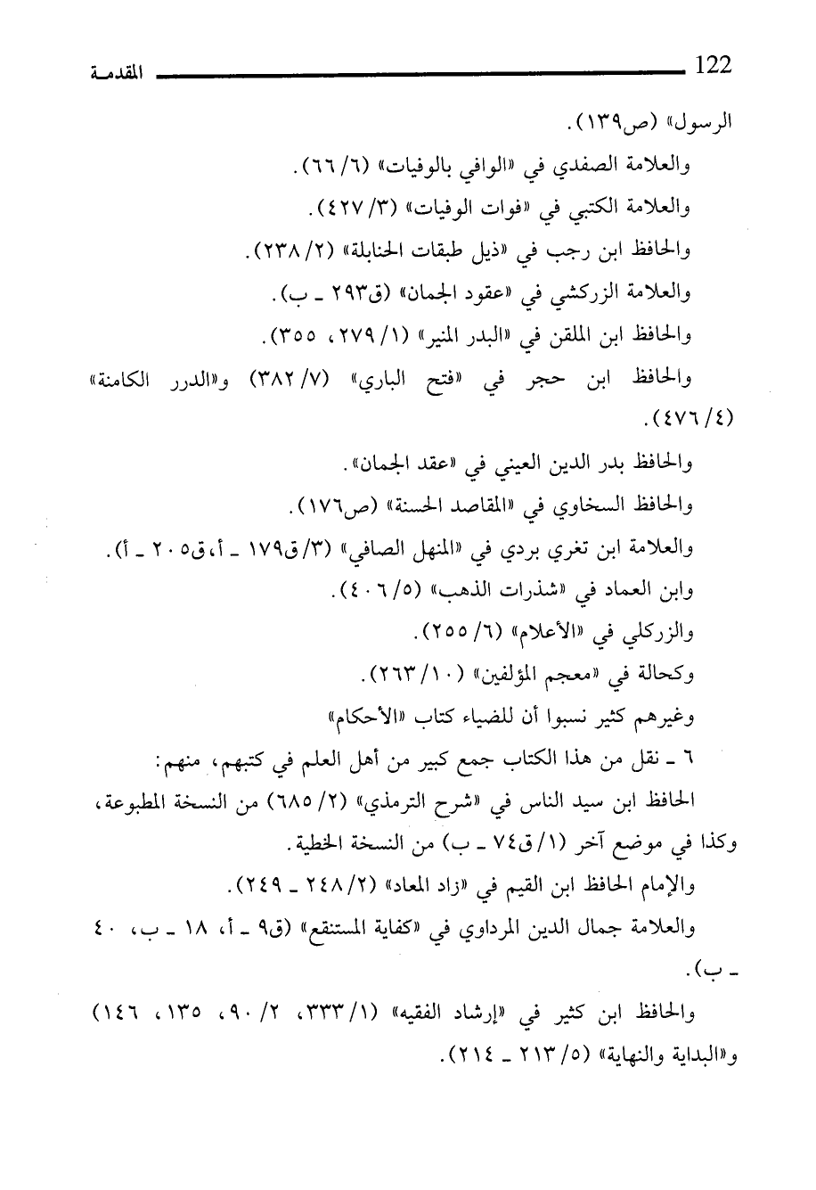 والحافظ ابن كثير في "إرشاد الفقيه" (1/ 333، 2/ 90، 135، 146) و"البداية والنهاية" (5/ 213 - 214).