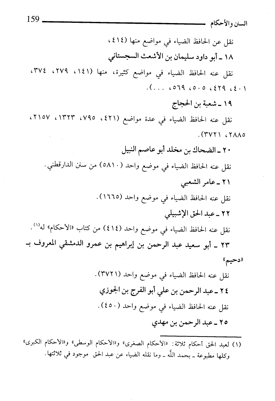 (¬1) لعبد الحق أحكام ثلاثة: "الأحكام الصغرى" و"الأحكام الوسطى" و"الأحكام الكبرى" وكلها مطبوعة -بحمد الله- وما نقله الضياء عن عبد الحق موجود في ثلاثتها.