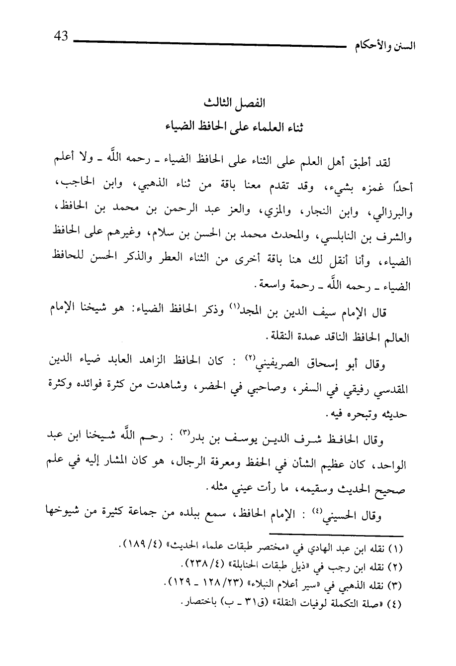 الفصل الثالث ثناء العلماء على الحافظ الضياء