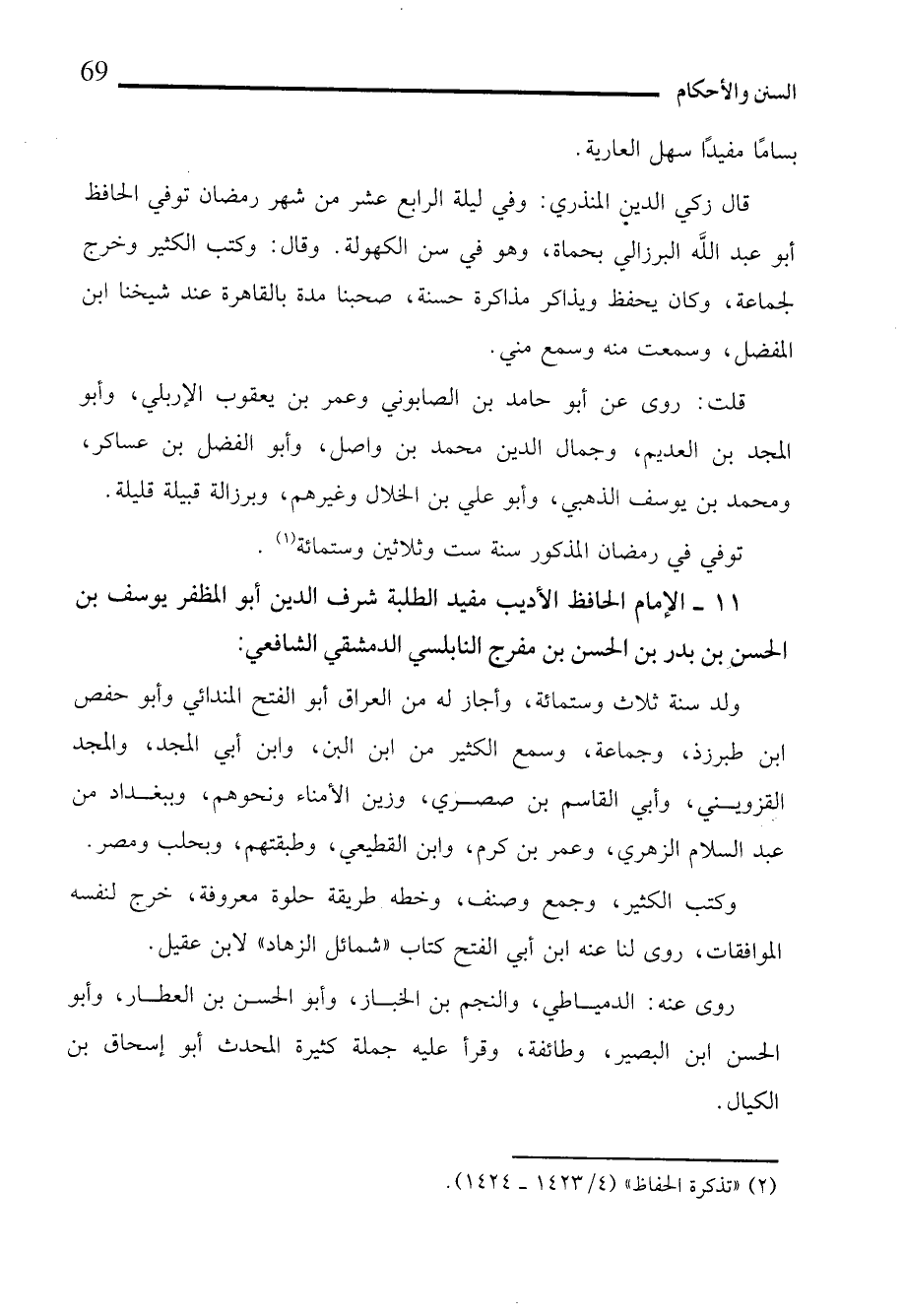 11 - الإمام الحافظ الأديب مفيد الطلبة شرف الدين أبو الظفر يوسف بن الحسن بن بدر بن الحسن بن مفرج النابلسي الدمشقي الشافعي: