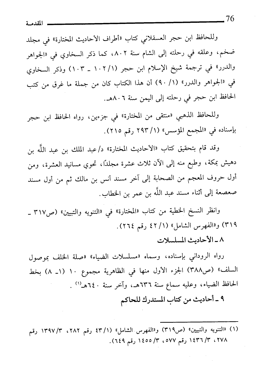 وانظر النسخ الخطية من كتاب "المختارة" في "التنويه والتبيين" (ص 317 - 319) و"الفهرس الشامل" (1/ 42 رقم 264).