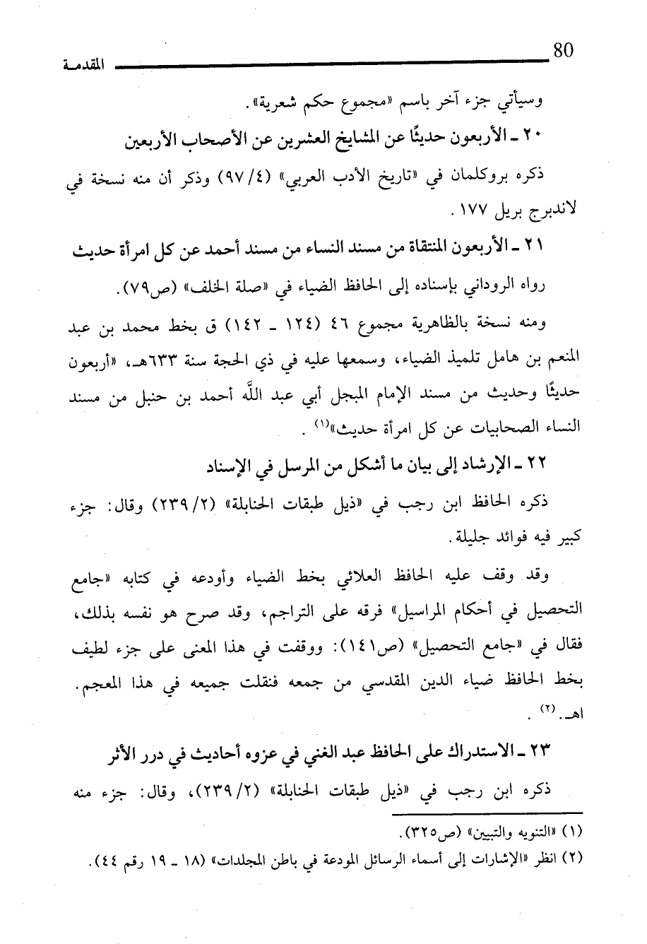 وقد وقف عليه الحافظ العلائي بخط الضياء وأودعه في كتابه "جامع التحصيل في أحكام المراسيل" فرقه على التراجم، وقد صرح هو نفسه بذلك، فقال في "جامع التحصيل" (ص 141): ووقفت في هذا المعنى على جزء لطيف بخط الحافظ ضياء الدين المقدسي من جمعه فنقلت جميعه في هذا المعجم. اهـ. (¬2).