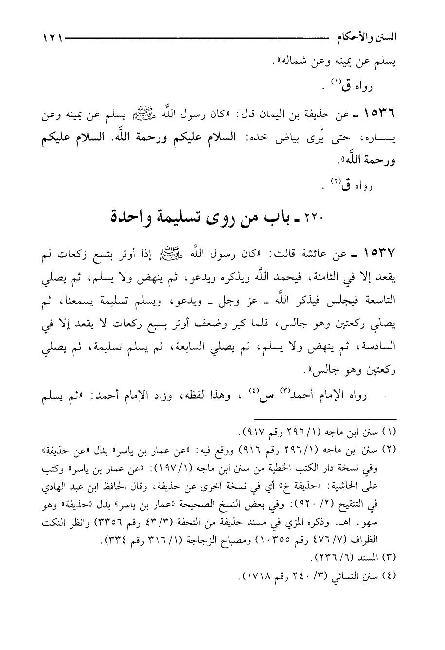 220 - باب من روى تسليمة واحدة