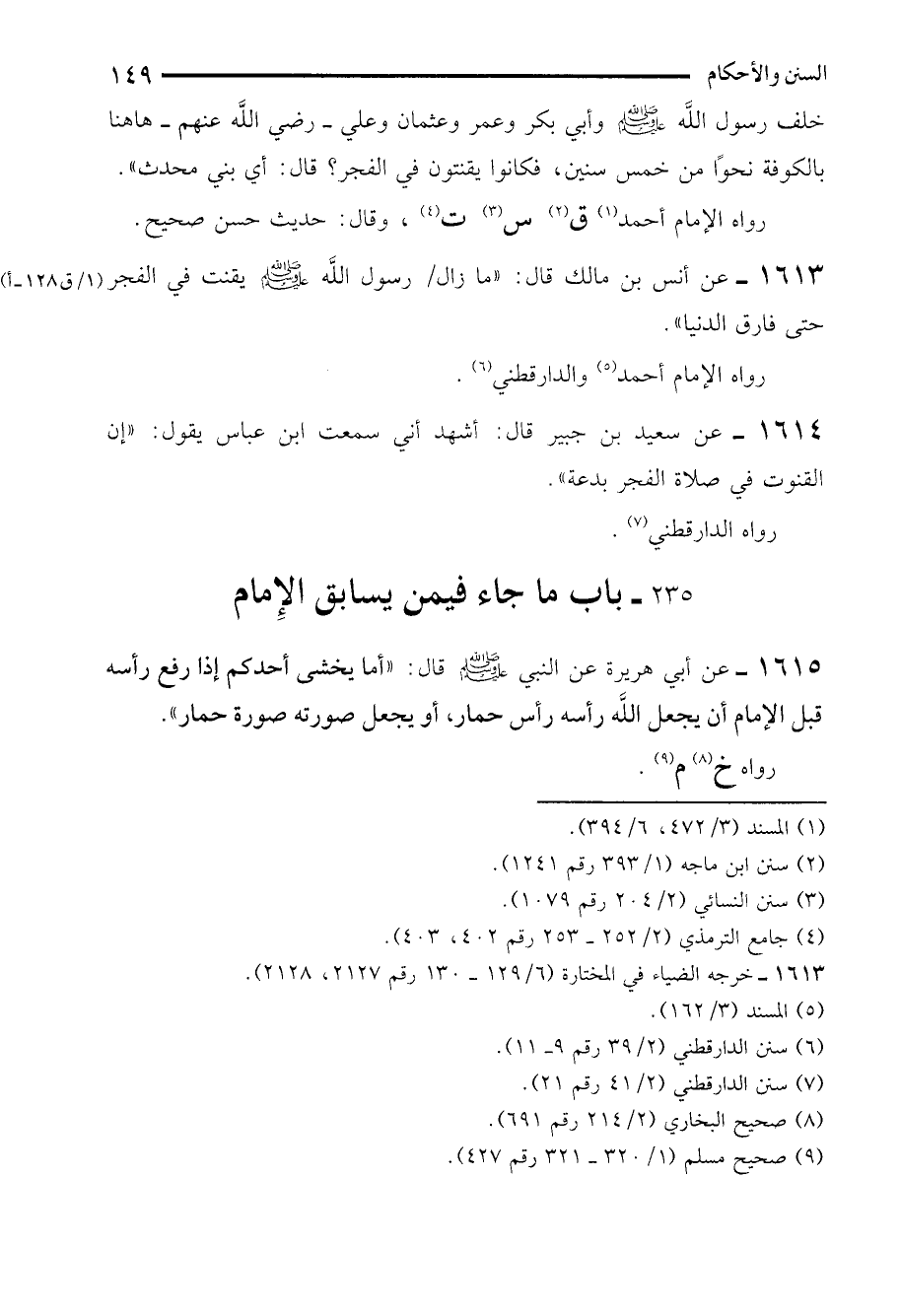 1613 - عن أنس بن مالك قال: "ما زال رسول الله - صلى الله عليه وسلم - يقنت في الفجر حتى فارق الدنيا".