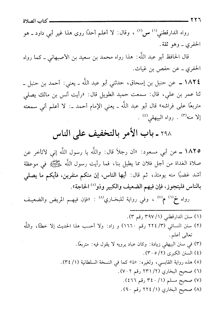 1824 - عن حنبل بن إسحاق، حدثني أبو عبد الله -يعني. أحمد بن حنبل- ثنا عمر بن علي، قال: سمعت حميد الطويل قال: "رأيت أنس بن مالك يصلي متربعًا على فراشه" قال أبو عبد الله -يعني الإمام أحمد-: لا أعلم أني سمعته إلا منه (¬3). رواه البيهقي (¬4).